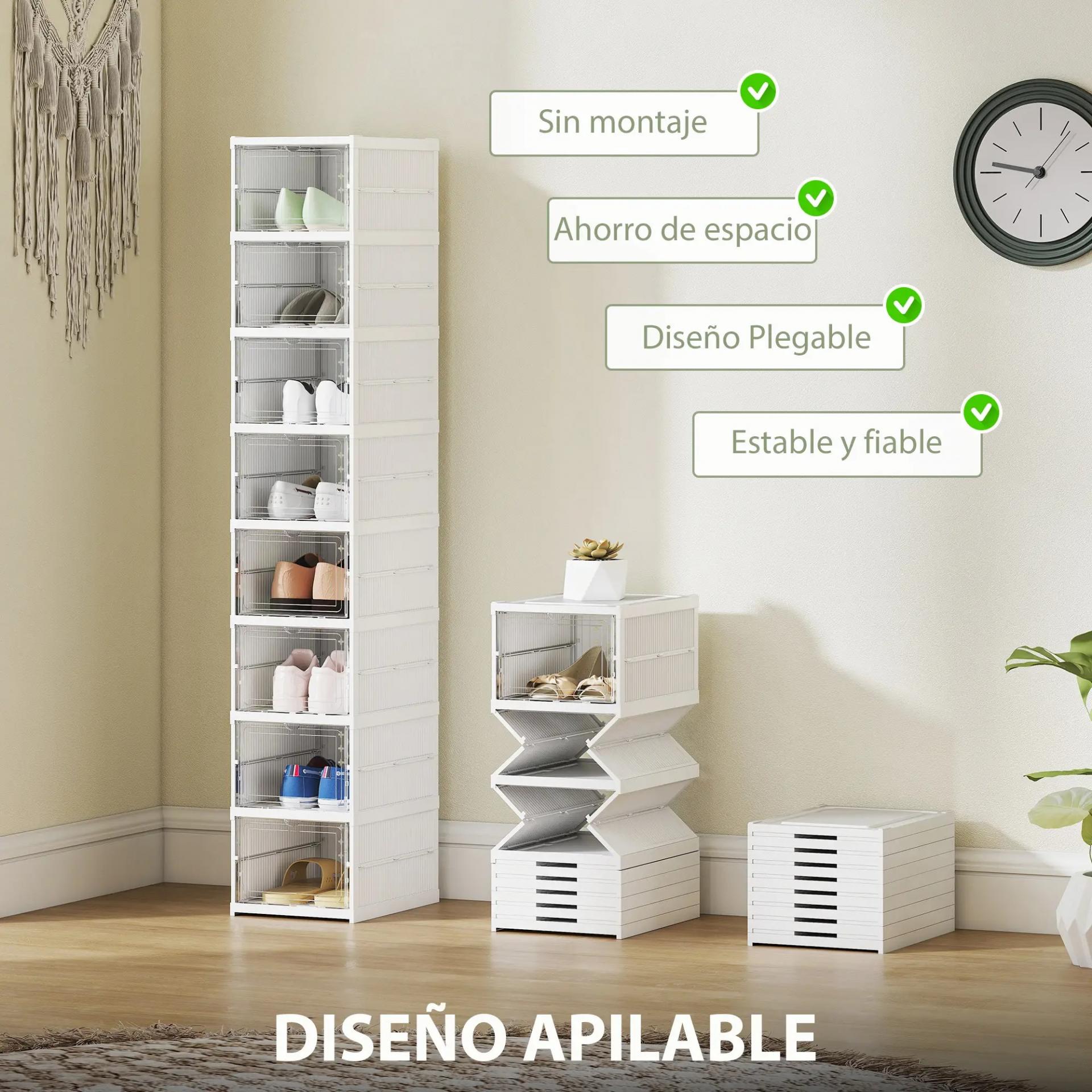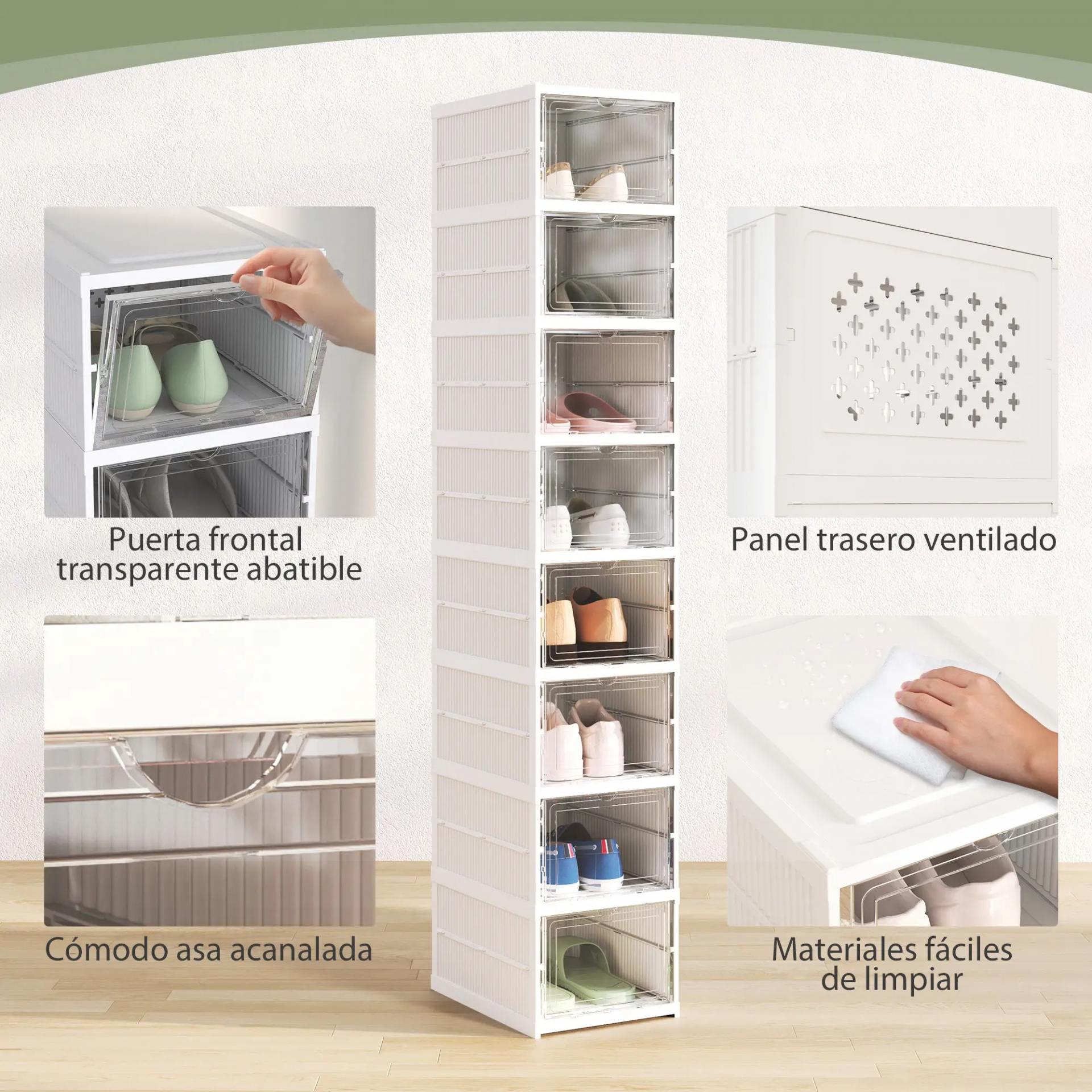 8 Cajas para Zapatos Apilables y Plegable con Puertas Transparentes hasta Talla 43 No Requiere Montaje Blanco