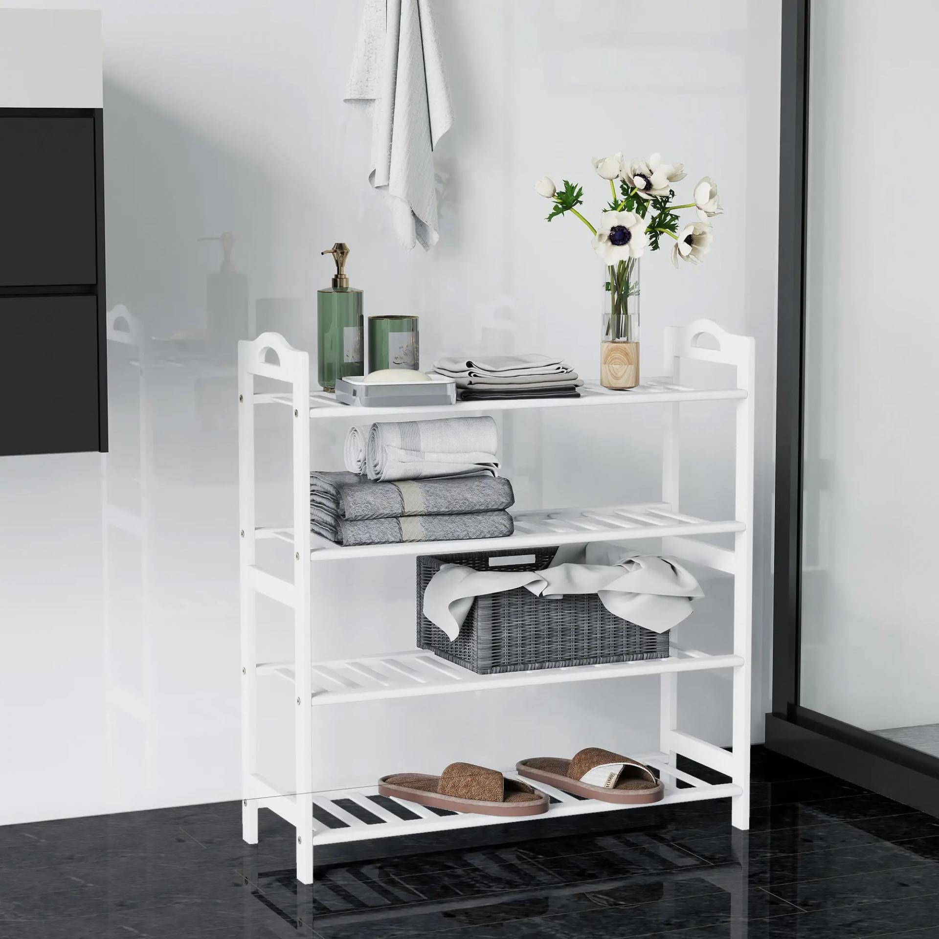 Estantería para Zapatos de Bambú para 12 Pares de Zapatos para Entrada Pasillo Dormitorio 67,5x24,7x72 cm Blanco