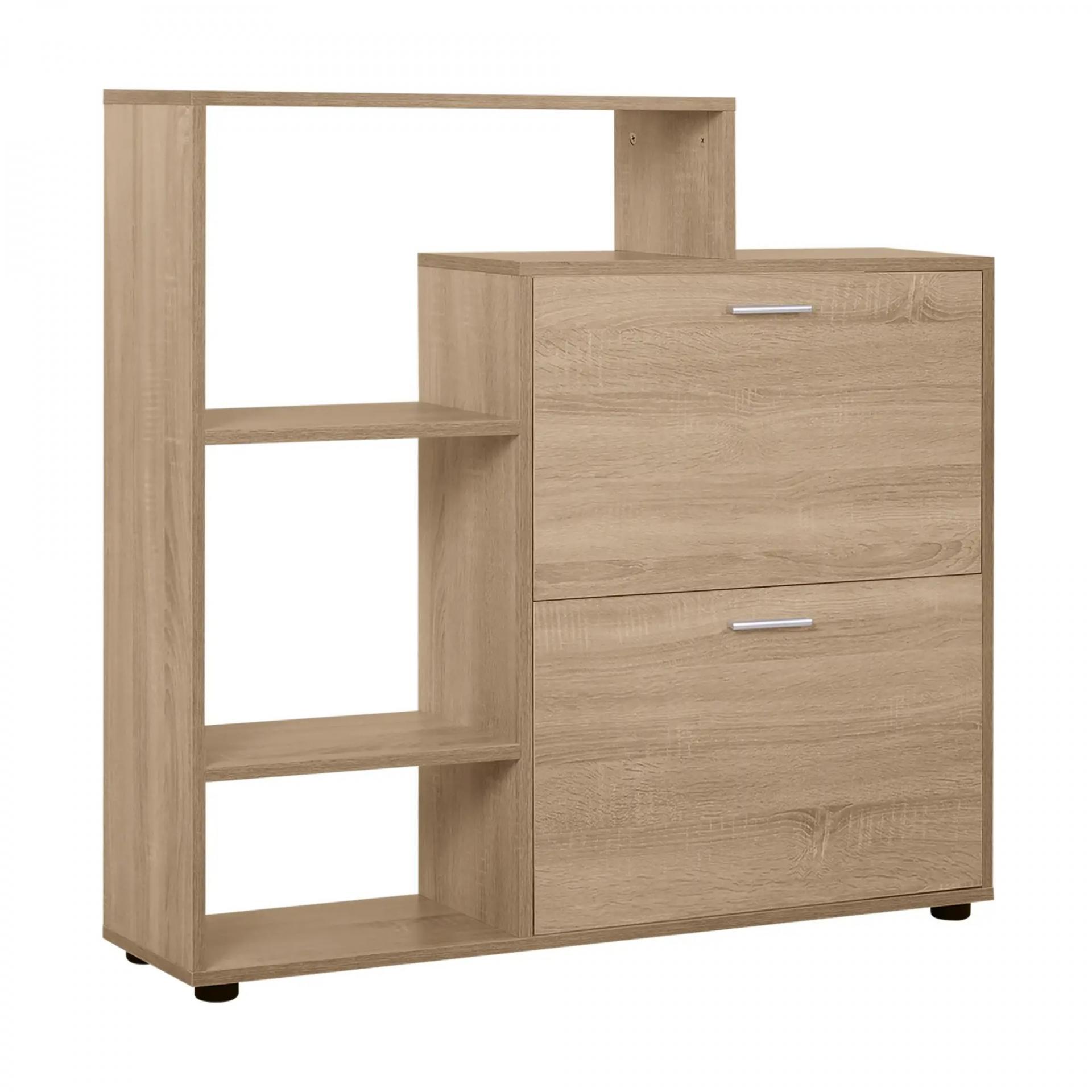 ZAPATERO MULTIUSOS: Este zapatero madera ofrece una solución práctica para mantener el orden en casa. Además de dos espacios cerrados para zapatos, también posee tres estantes adicionales