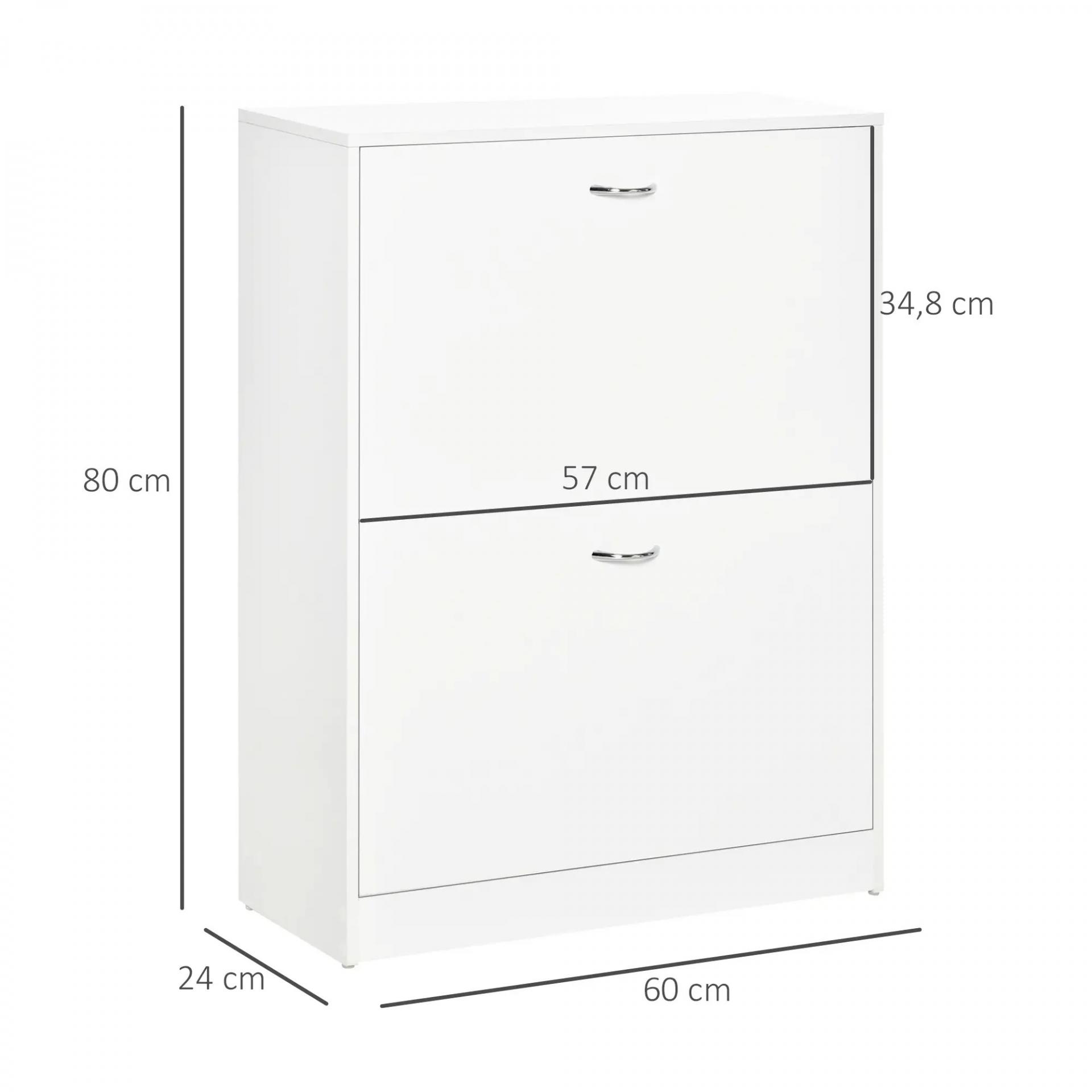 Zapatero Moderno Zapatero de Entrada Recibidor Estrecho con 2 Cajones y Estantes Ajustables para Pasillo 60x24x80 cm Blanco