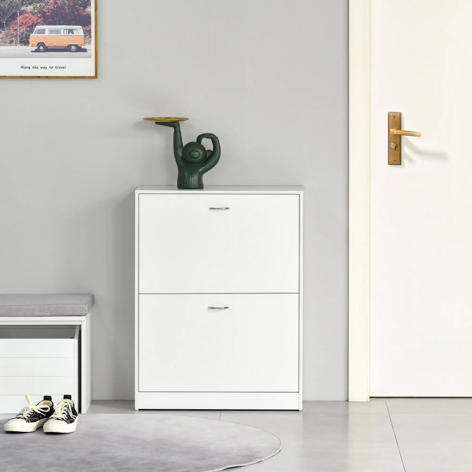 - AMPLIO ALMACENAJE: Este armario para zapatos cuenta con 2 amplios cajones abatibles. Cada cajón tiene 2 compartimentos, para almacenar hasta 8 pares de zapatos en total. Puedes usar la encimera para exhibir tus decoraciones o fotos favoritas