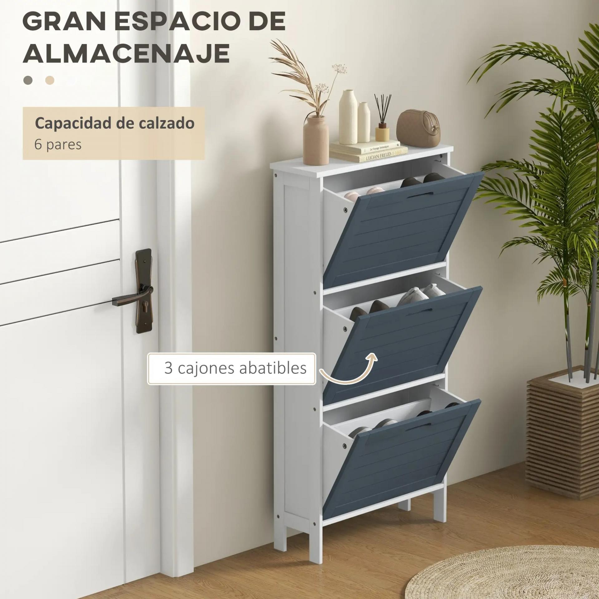 - AMPLIO ESPACIO DE ALMACENAMIENTO: Este zapatero moderno tiene tres cajones con bisagras, que permiten acomodar un total de 6 pares de zapatos. Además, la encimera es ideal para exhibir tus decoraciones favoritas o dejar las llaves al entrar a casa