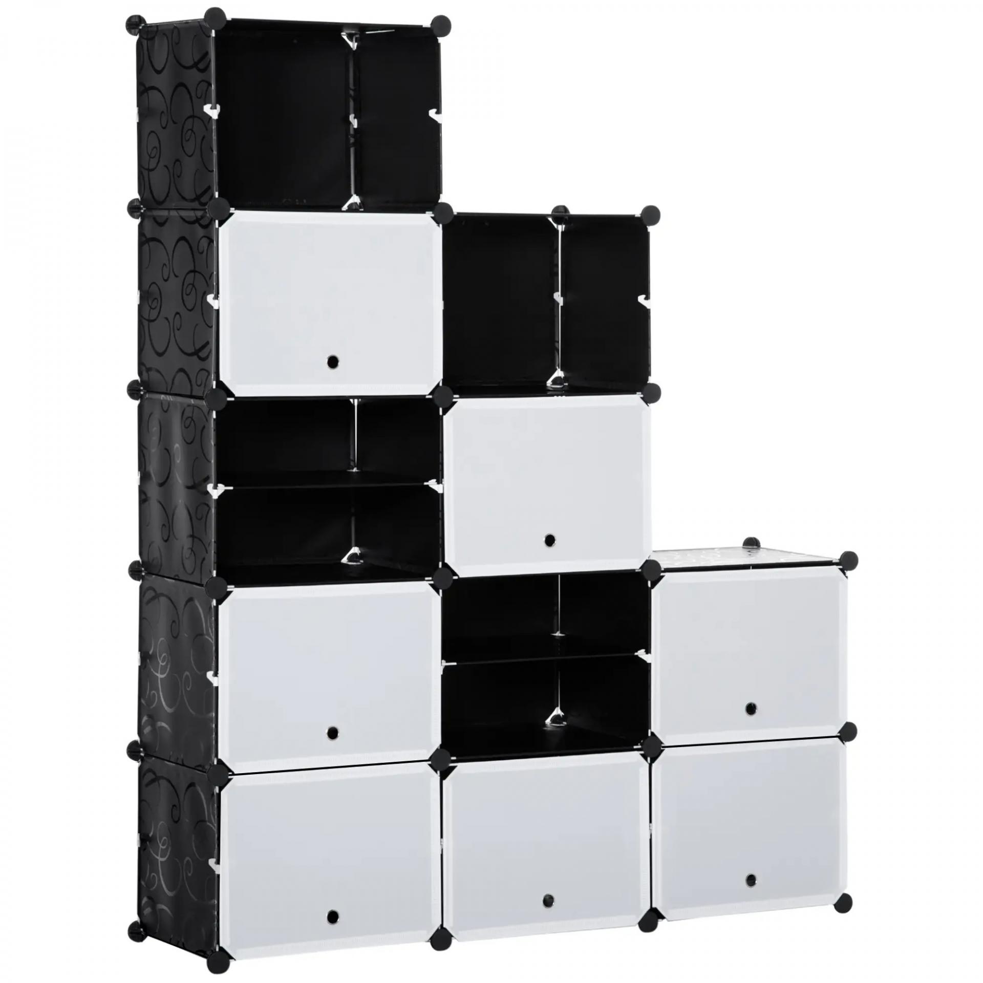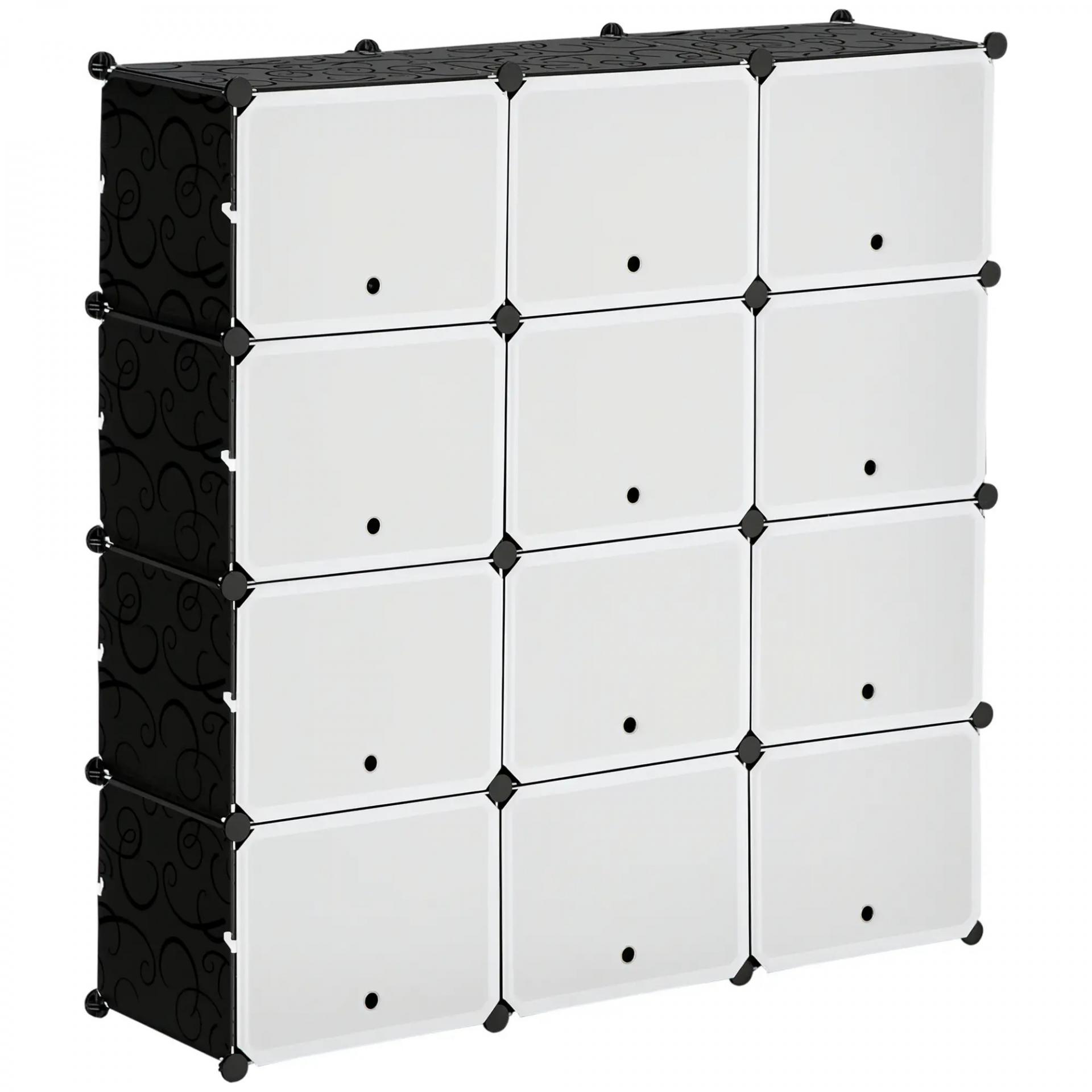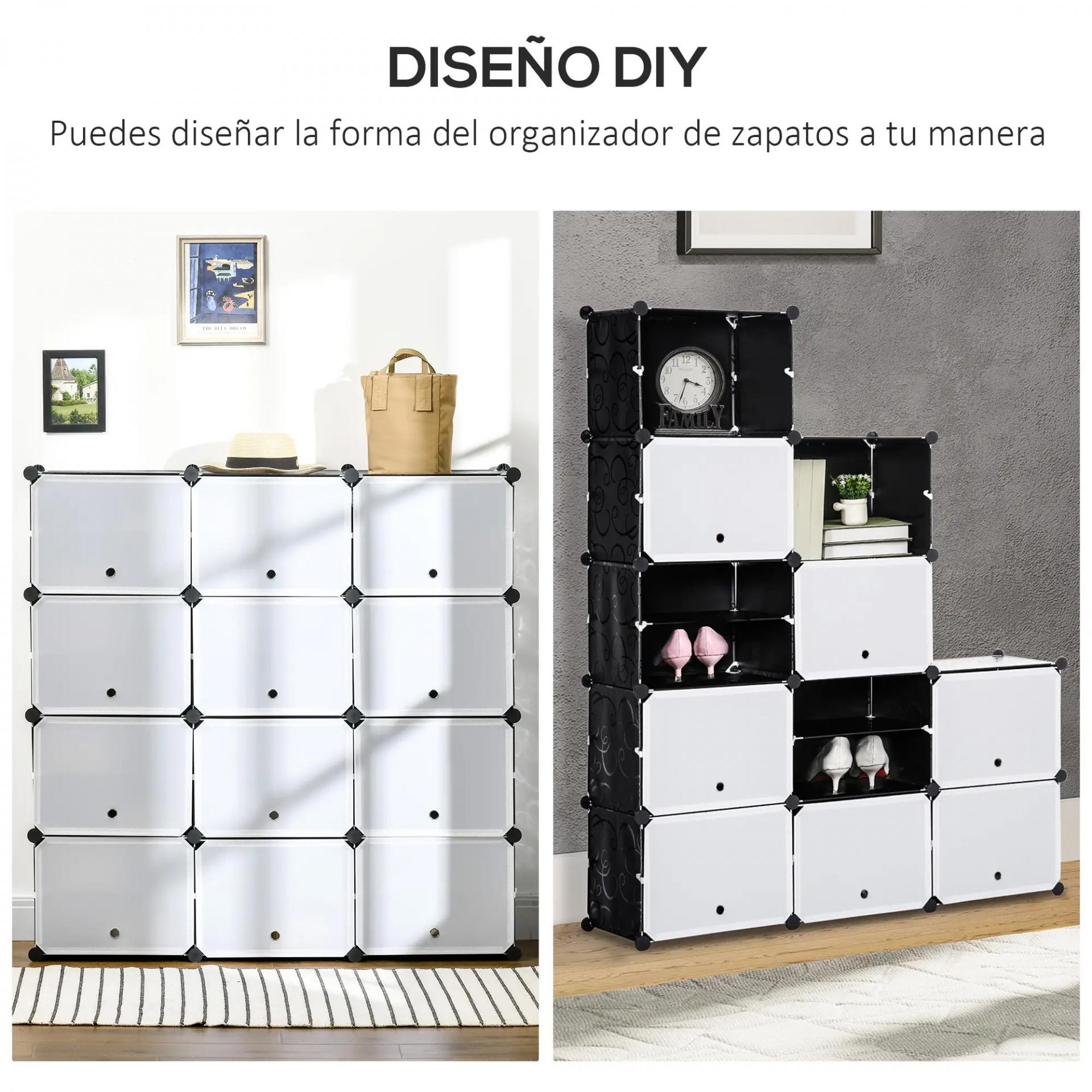 Armario Modular de Plástico Armario Portátil con 12 Cubos Organizador de Zapatos 125x32x125 cm Negro y Blanco