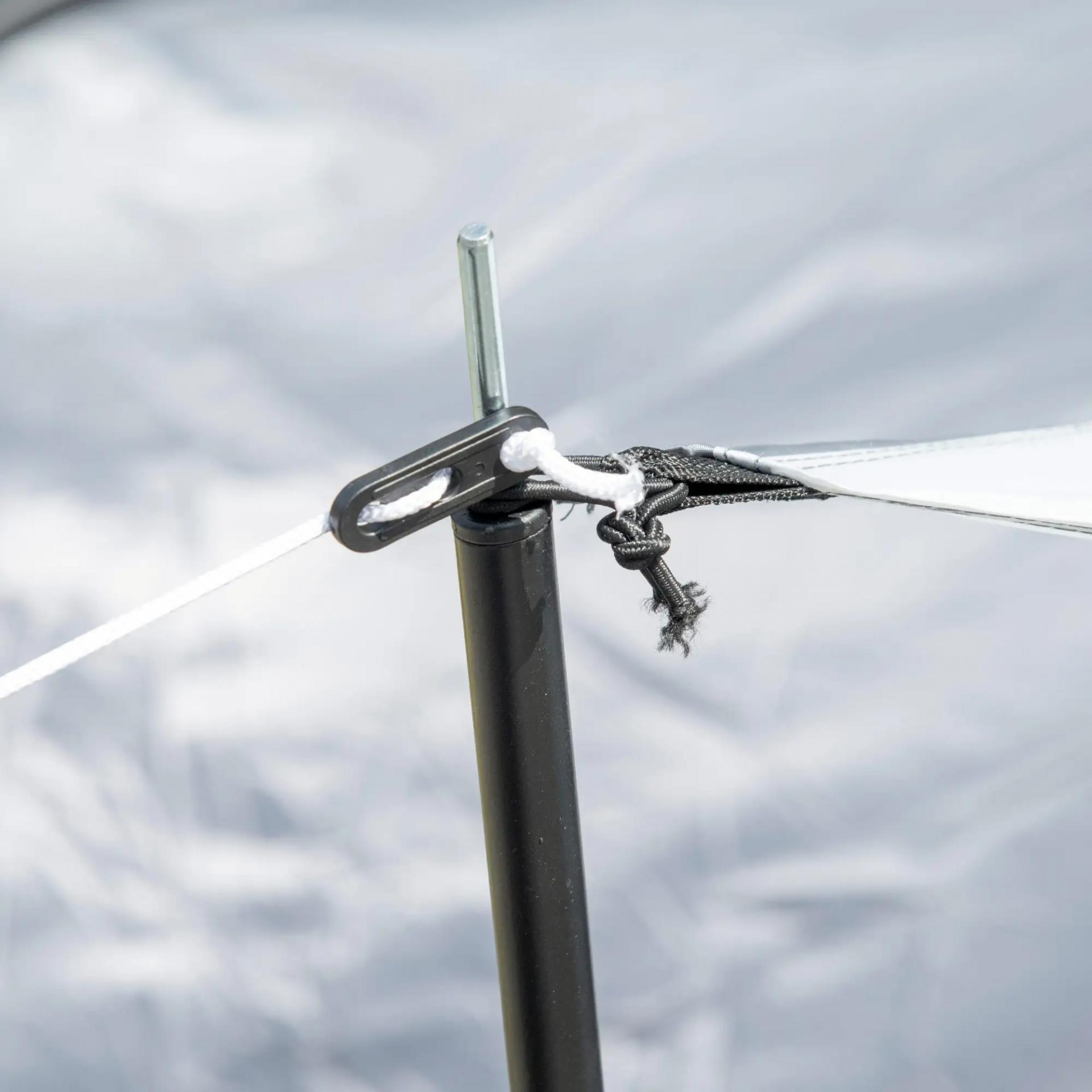 - MATERIAL RESISTENTE: Esta tienda de campaña alta está diseñada y fabricada con poliéster Oxford impermeabilizado (nivel de impermeabilidad de la capa exterior: 2000 mm), anti-UV 50+ y con costuras selladas. Además, cuenta con robustos arcos de fibra de vidrio de 9,5 mm de diámetro