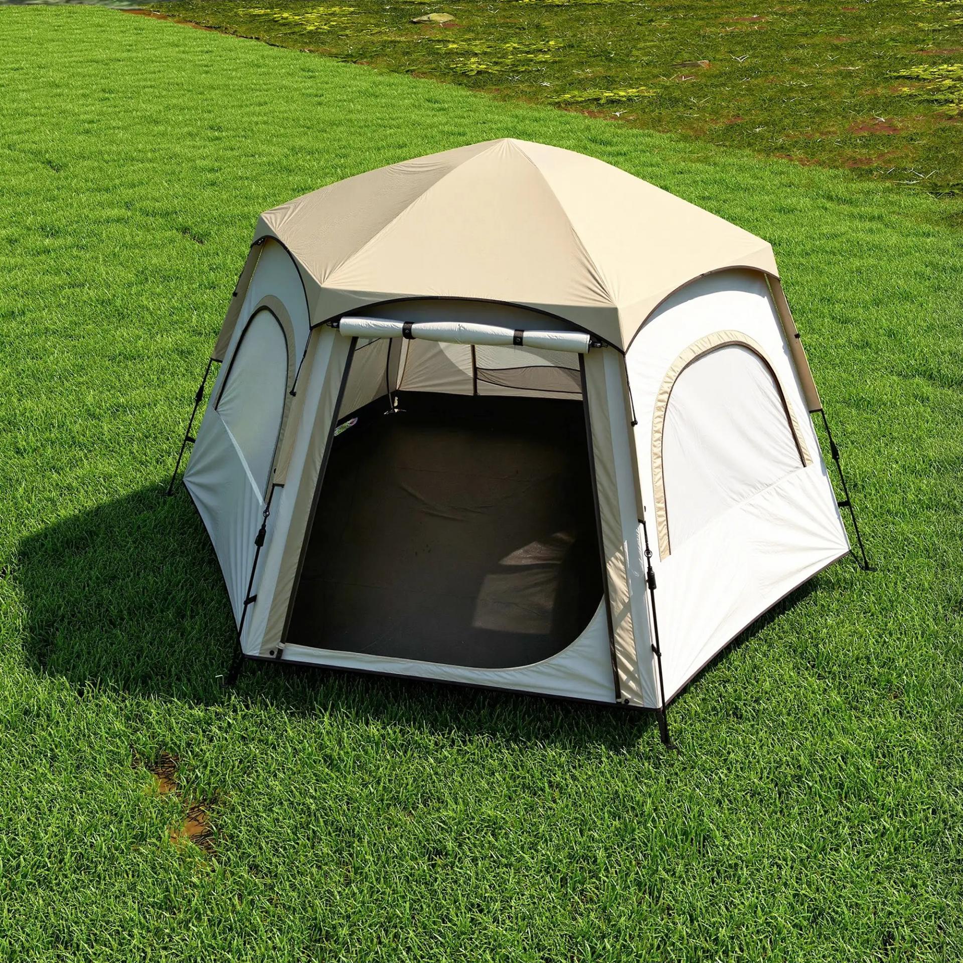 - EXCELENTE VENTILACIÓN Y FUNCIONALIDAD: Ventilación óptima gracias a dos puertas y cuatro ventanas de malla, que mantienen a los insectos fuera. El diseño hexagonal favorece el flujo de aire. Esta tienda acampada incluye bolsillo de almacenamiento y gancho para lámpara