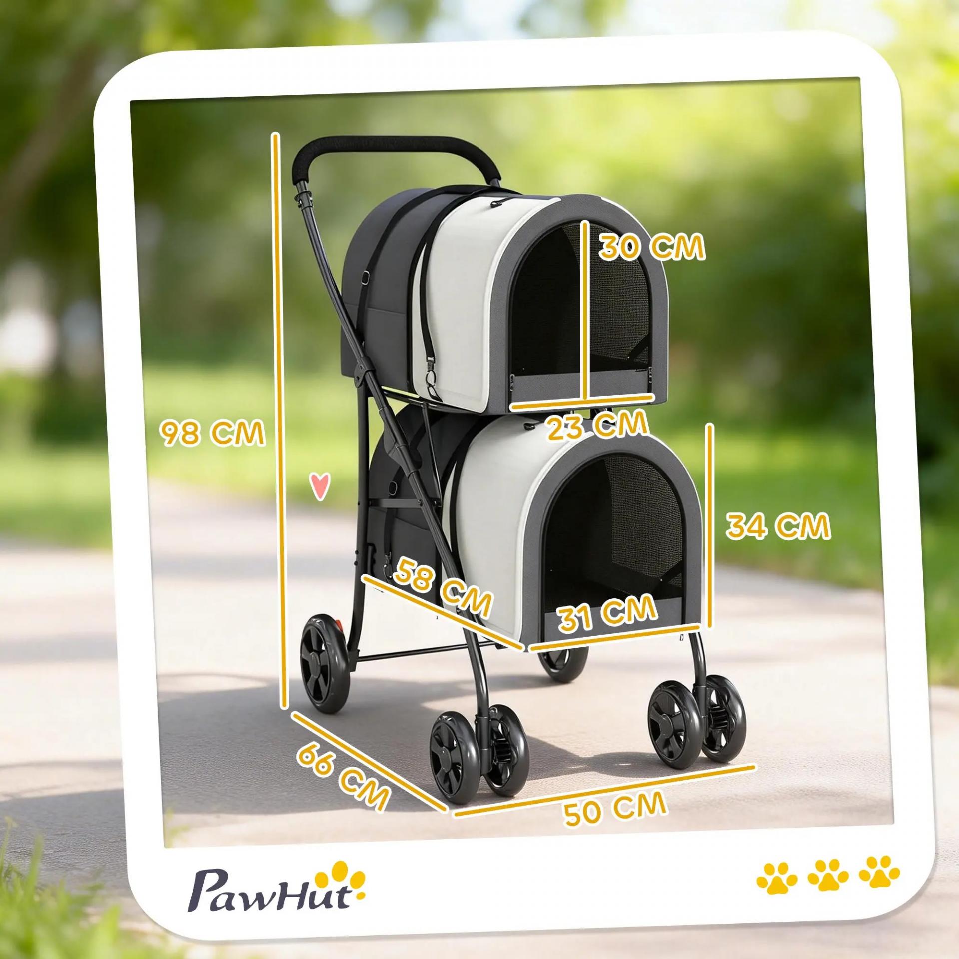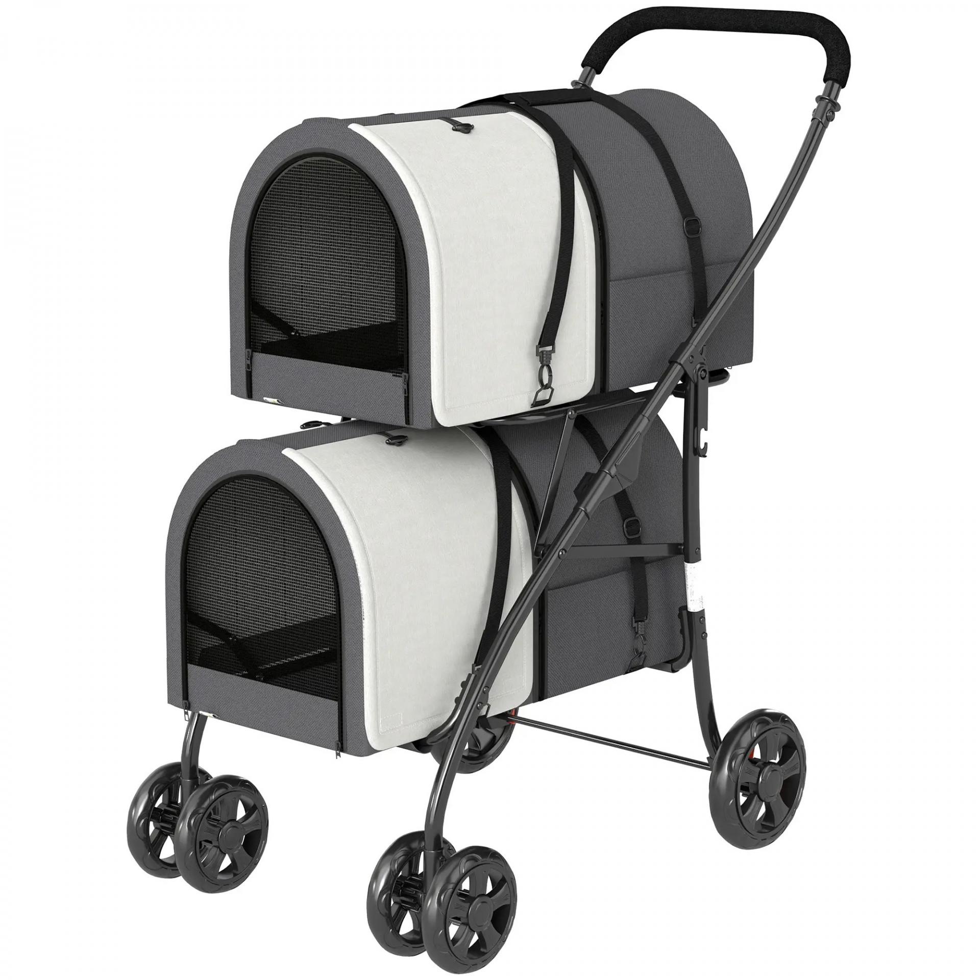 Carrito Doble para Perros Gatos Plegable con 2 Transportines Extraíbles con Cinturón y Cojines 66x50x98cm Gris Oscuro