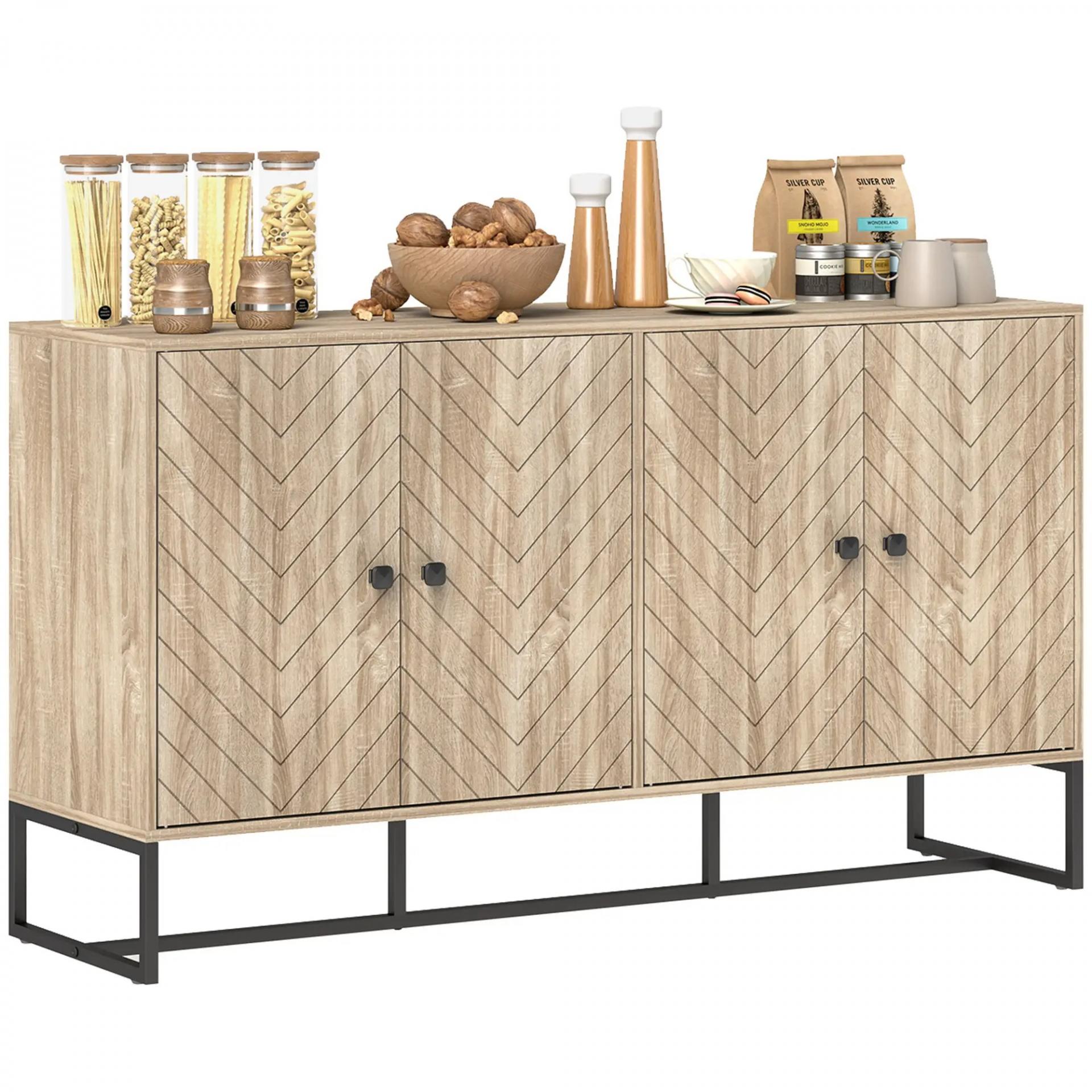 Aparador de Salón con 4 Puertas con Diseño Chevron Estantes Ajustables Patas de Acero 140,5x40x81,5 cm Roble