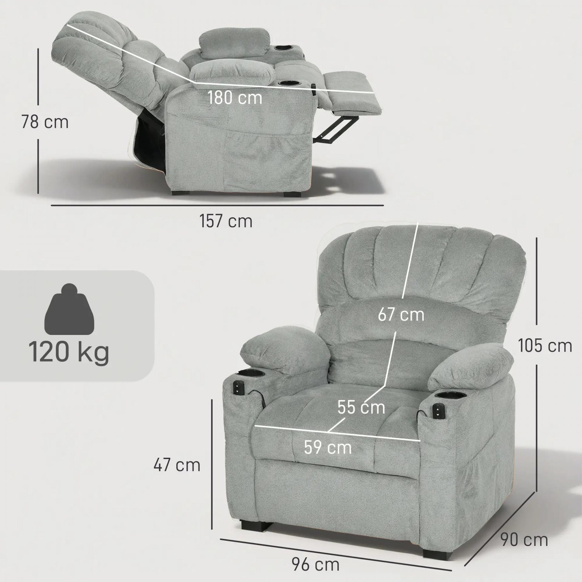 - COMODIDADES INTEGRADAS: Disfruta de tu sillón relax reclinable eléctrico con dos portavasos, dos bolsillos laterales y puerto USB integrado para tener bebidas, mandos, revistas y dispositivos siempre a mano mientras te relajas