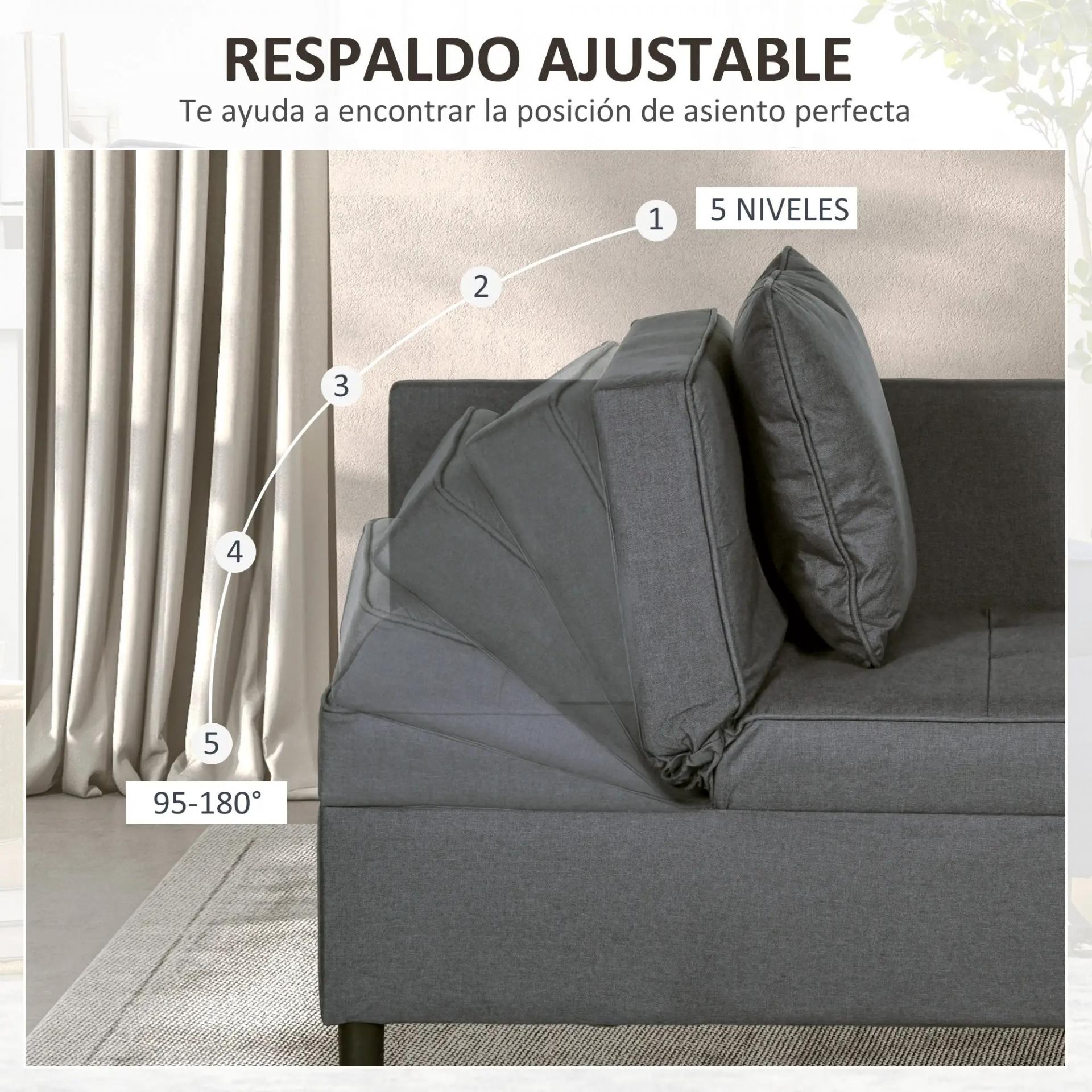 DISEÑO 3 EN 1: Este sofá cama individual ofrece tres funciones: sofá de dos plazas, chaise longue o cama individual para invitados. Una solución versátil para optimizar el espacio en casas y oficinas