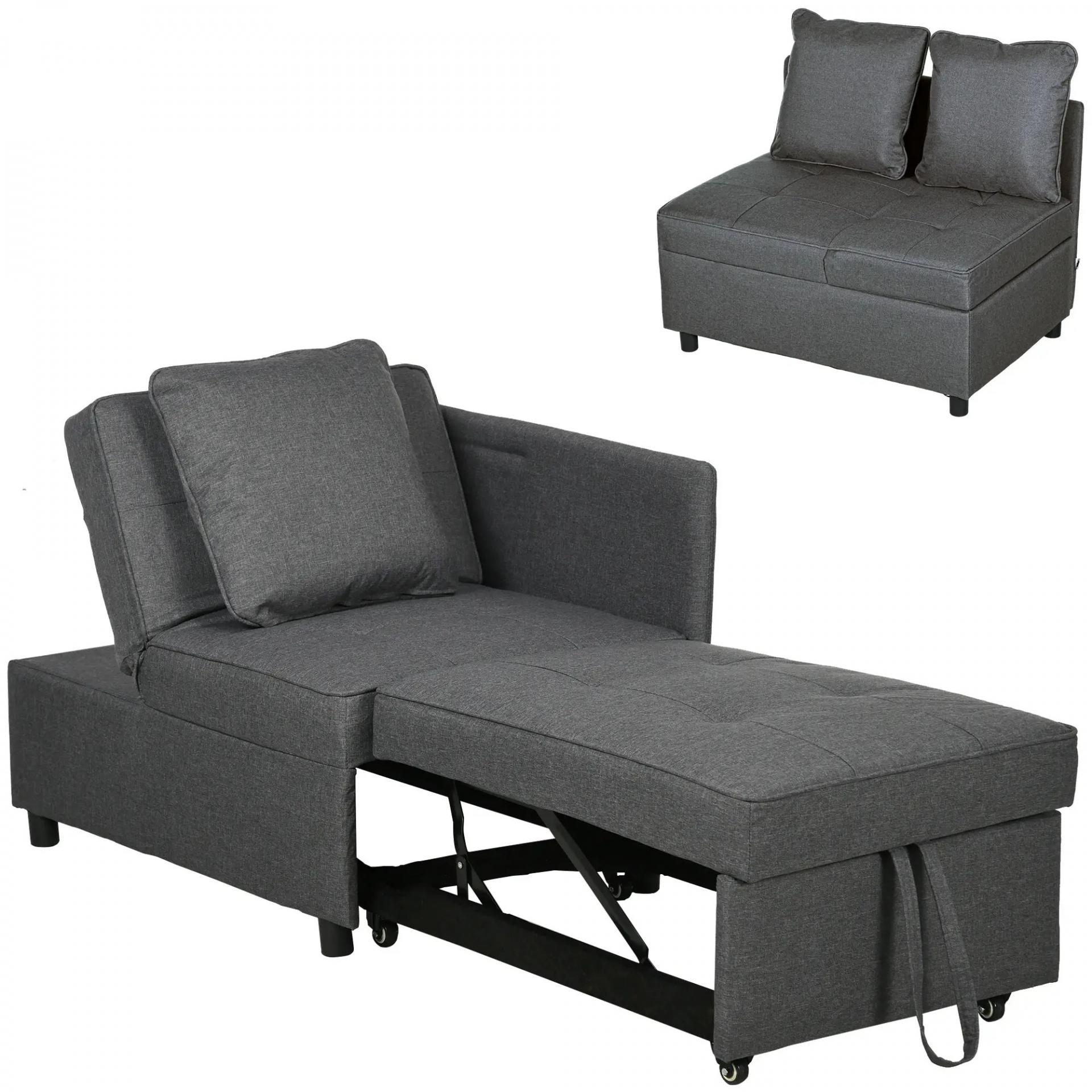 Sofá Cama de 1 Plaza con Respaldo Ajustable Sillón Cama Individual con Almohadas para Dormitorio Apartamento Gris