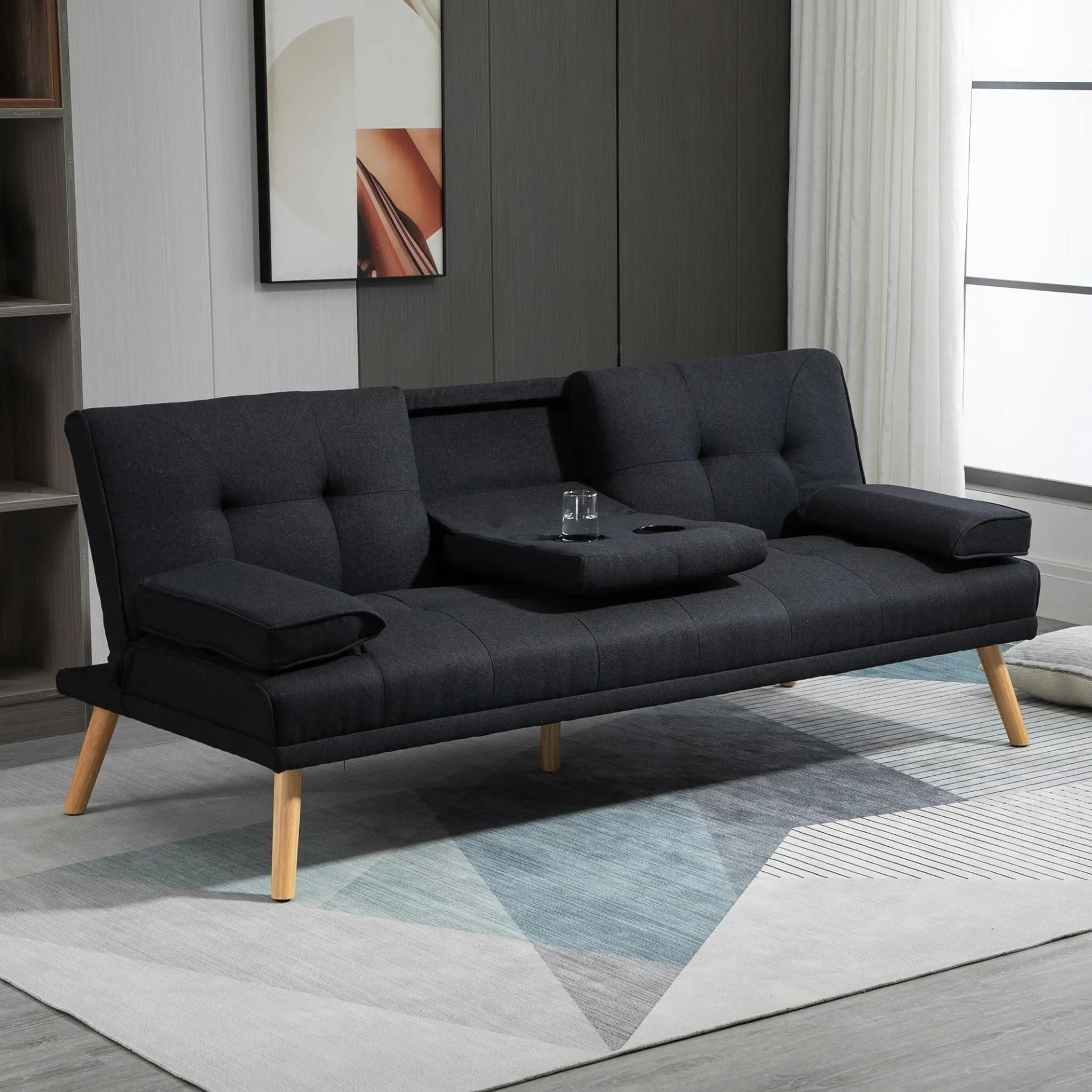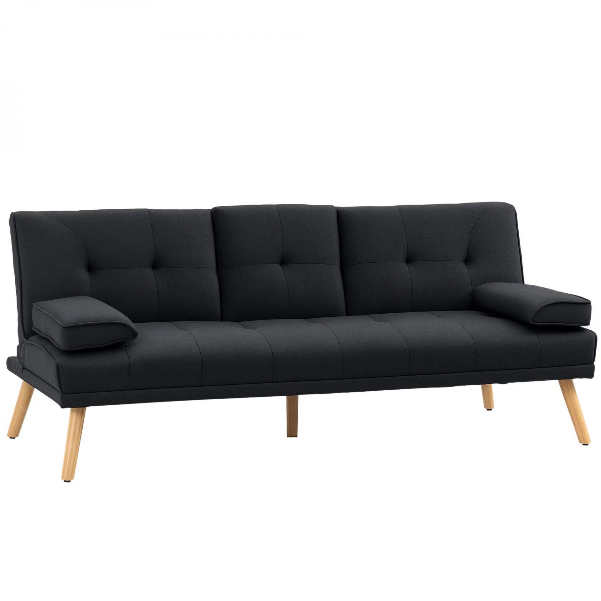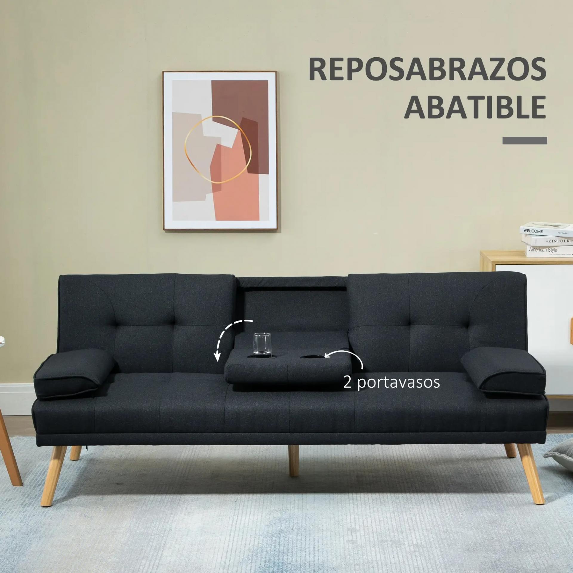 Sofá Cama 3 Plazas Plegable con Respaldo Ajustable de 3 Niveles Reposabrazos Desmontable 181x77x78 cm Gris Oscuro