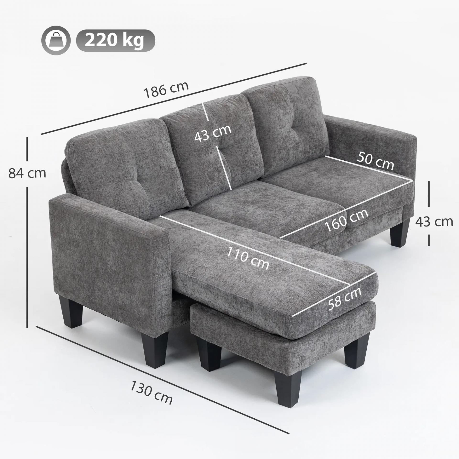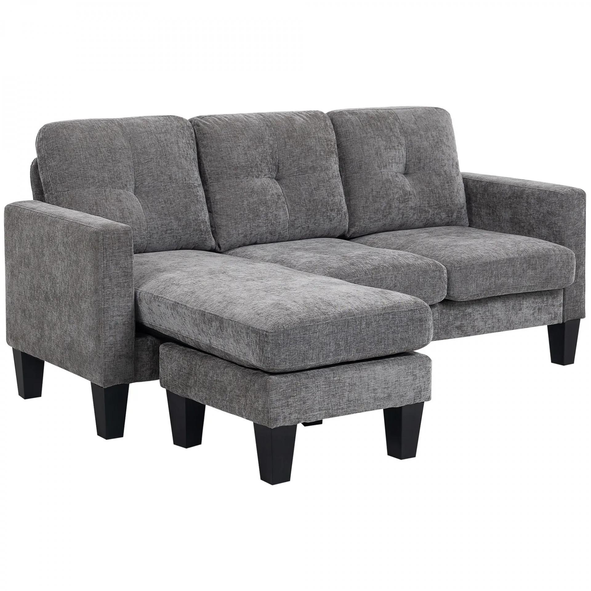 Sofá Chaise Longue Reversible con Estructura de Acero Tapizado en Chenilla 186x130x84cm Gris Oscuro