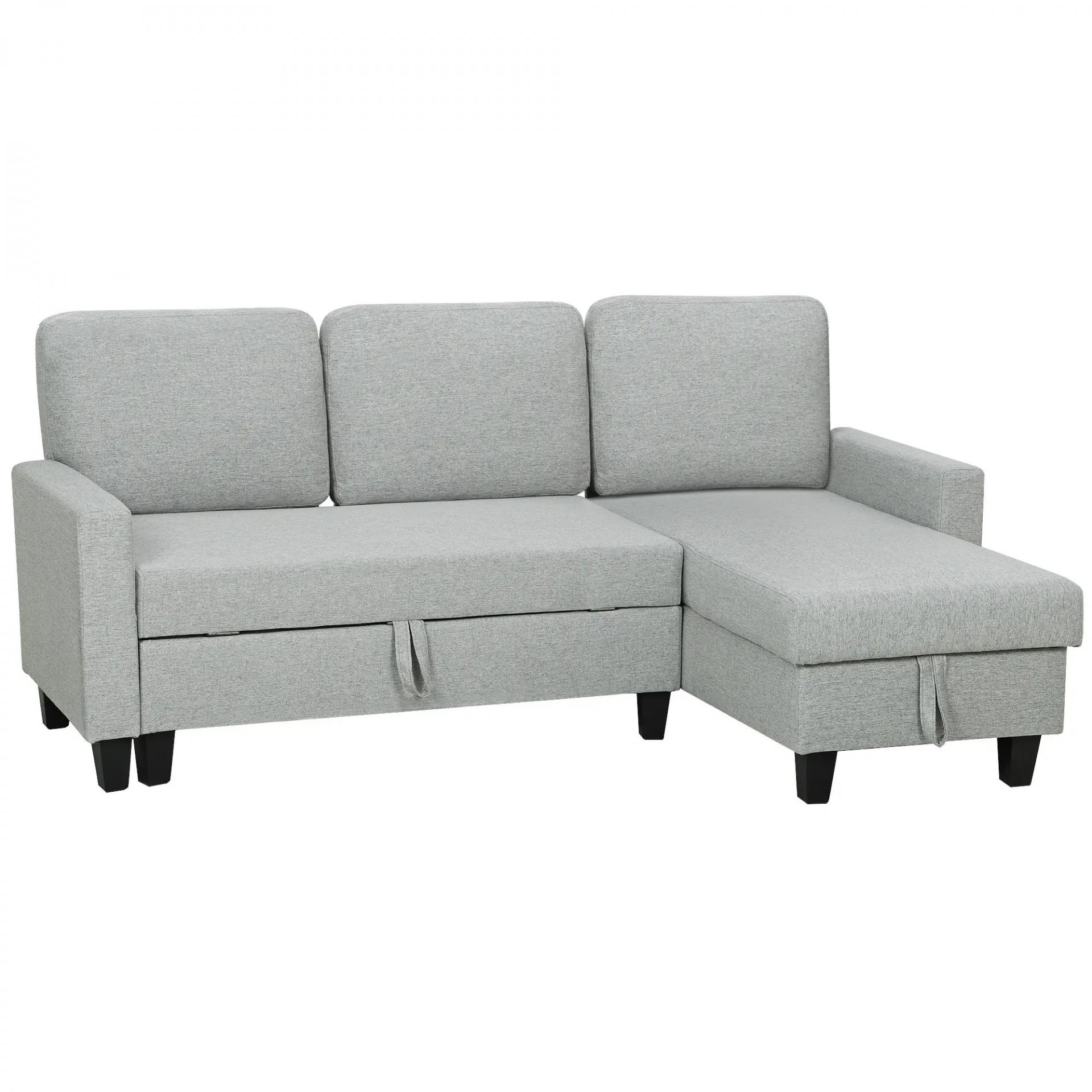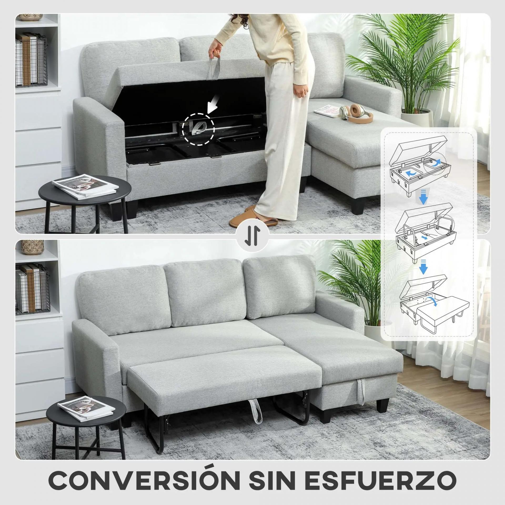 Sofá Cama Chaise Longue de 3 Plazas Chaise Longue Reversible Ambos Lados con Almacenaje con Fundas Removibles Gris