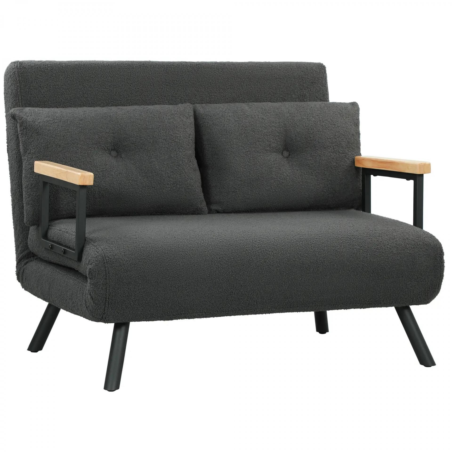 Sofá Cama Convertible 4 en 1 Sillón Cama 2 Plazas Plegable Respaldo Ajustable de 5 Niveles Almohadas 102x73x81cm Gris