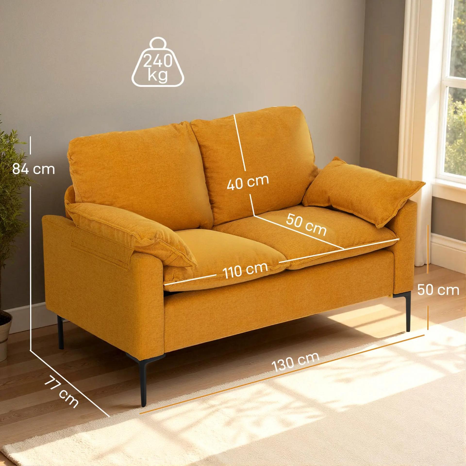 Sofá de 2 Plazas Tapizado en Terciopelo con Patas de Metal Reposabrazos Acolchado 130x77x84 cm Amarillo