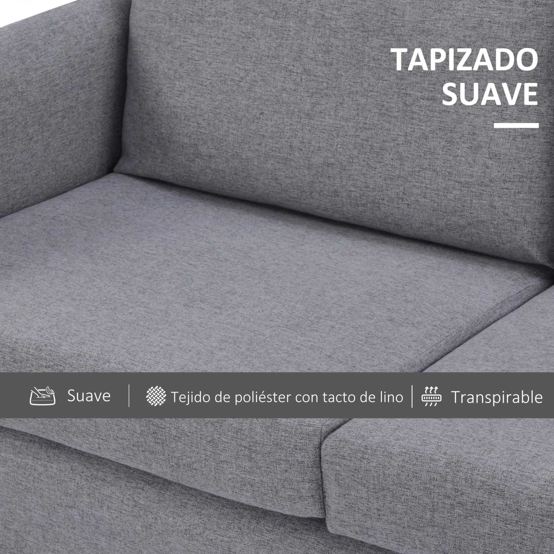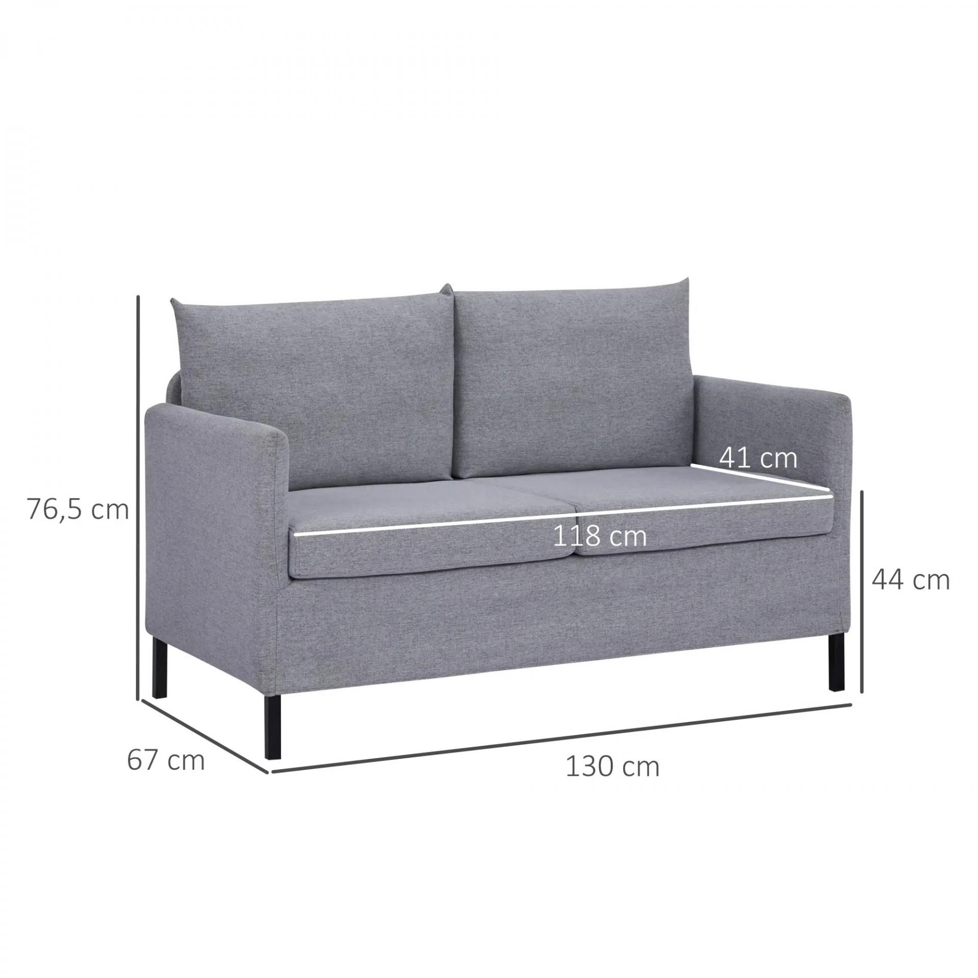 Sofá de 2 Plazas Tapizado en Lino Sintético con Cojines Acolchados Desenfundables Reposabrazos 130x67x76,5 cm Gris