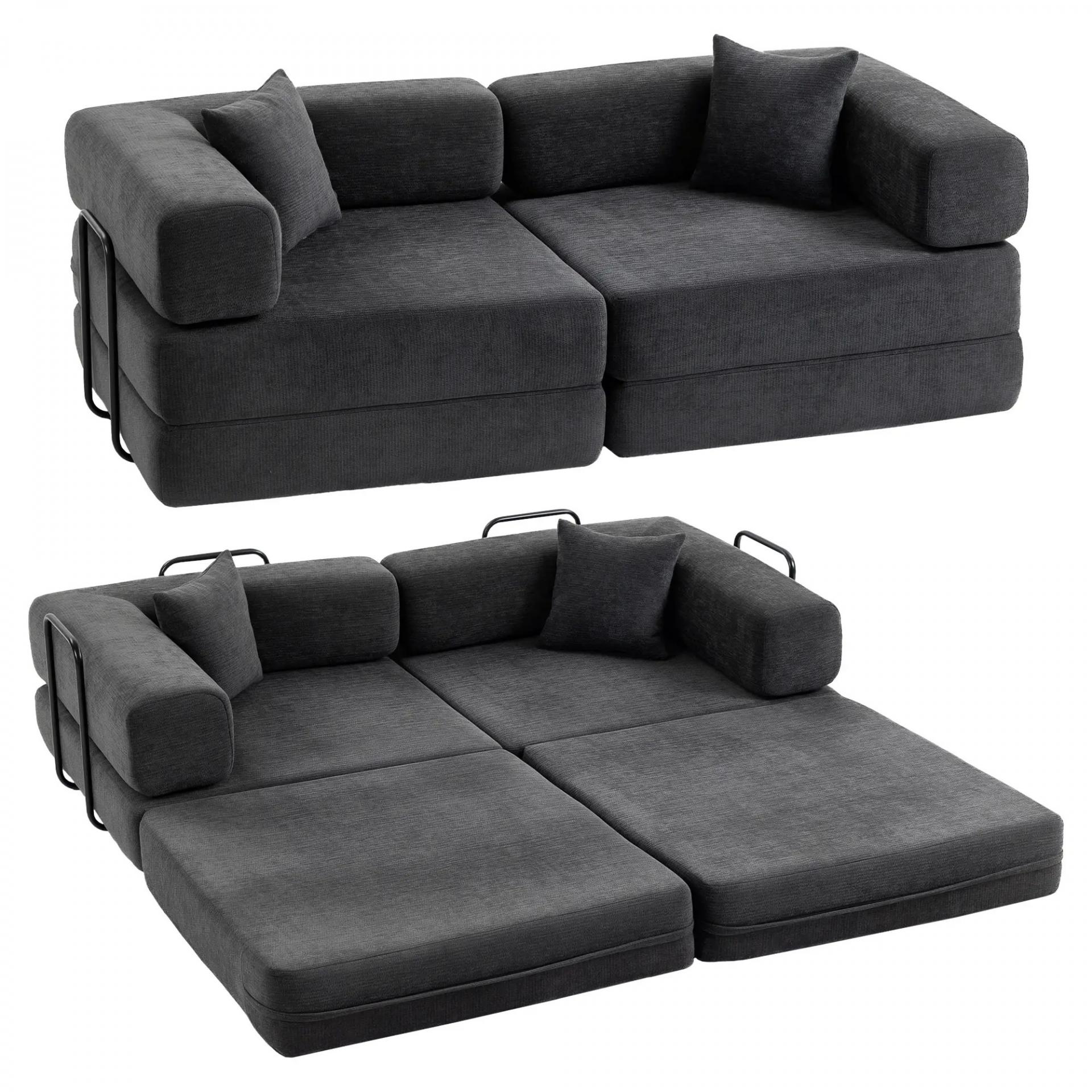 Sofá Cama de 2 Plazas Plegable Tapizado en Chenilla con Acolchado Grueso Reposabrazos Anchos 2 Almohadas Gris Oscuro