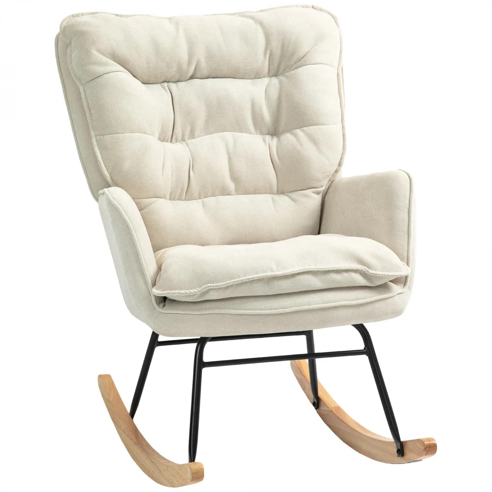 Silla Mecedora con Patas de Madera de Haya y Reposabrazos Mecedora para Lactancia Carga 120 kg para Dormitorio Beige