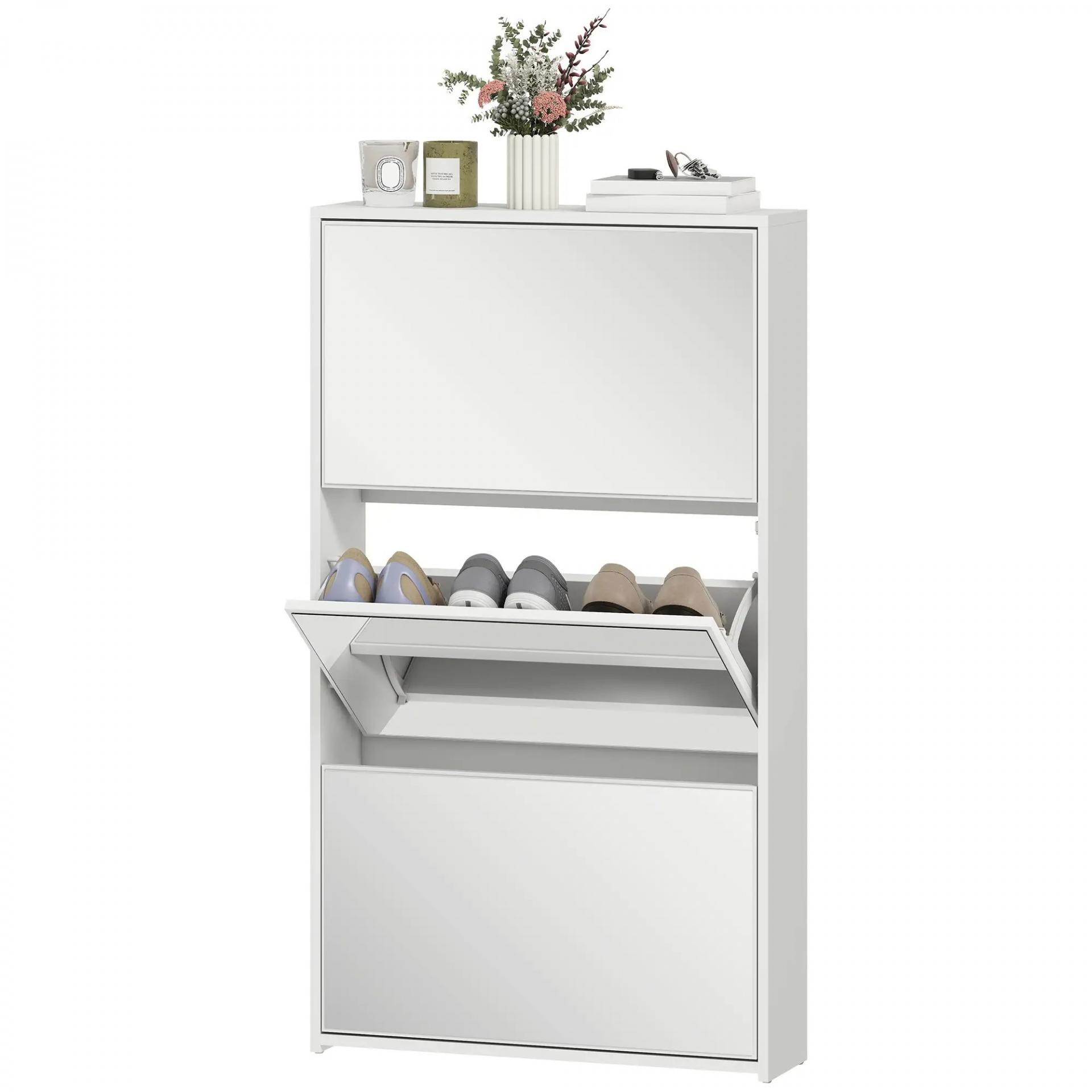 Zapatero Entrada Recibidor con 3 Puertas con Espejo Zapatero Estrecho para 9 Pares de Zapatos 65x17x114,5 cm Blanco