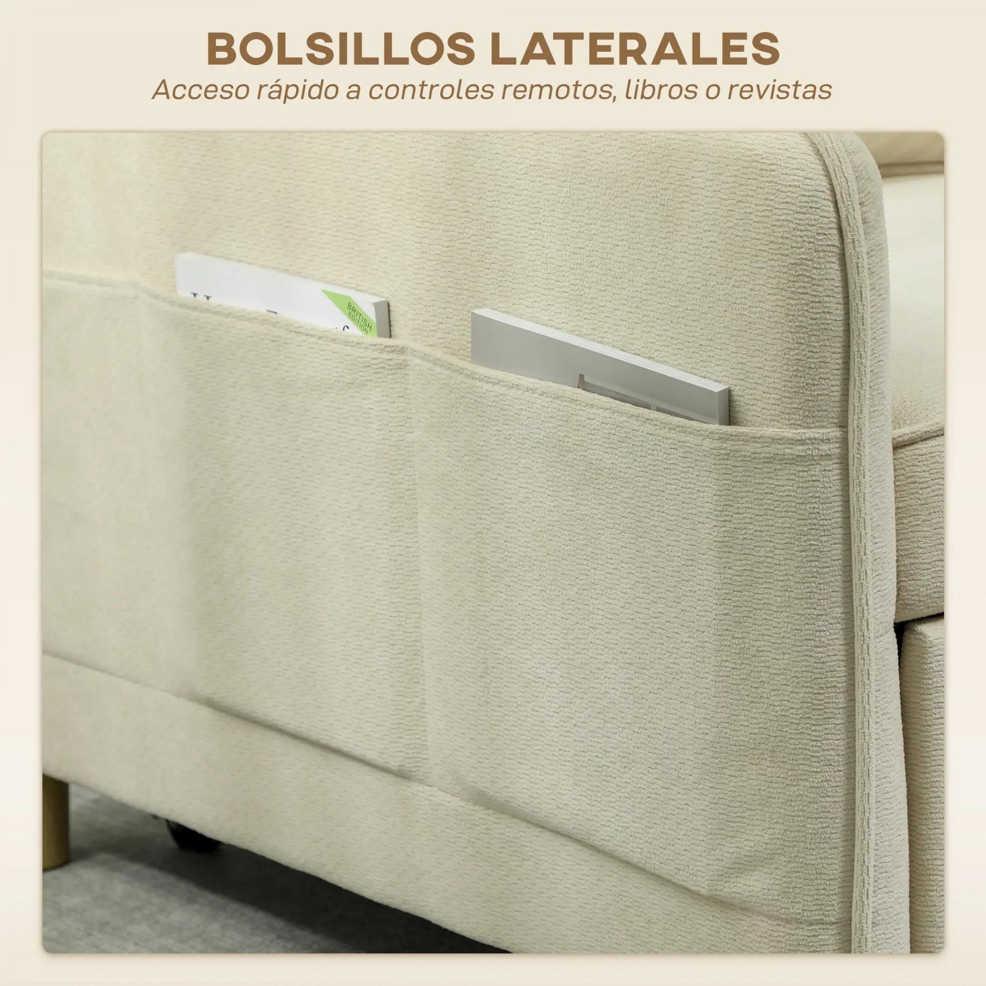 - RESPALDO DE TRES POSICIONES: Este sofá cama individual ofrece respaldo reclinable a 105°, 140° y 180° mediante mecanismo click-clack, permitiendo relajarse sentado, semitumbado o tumbado. Sus 6 bolsillos laterales mantienen libros o mandos siempre a mano
