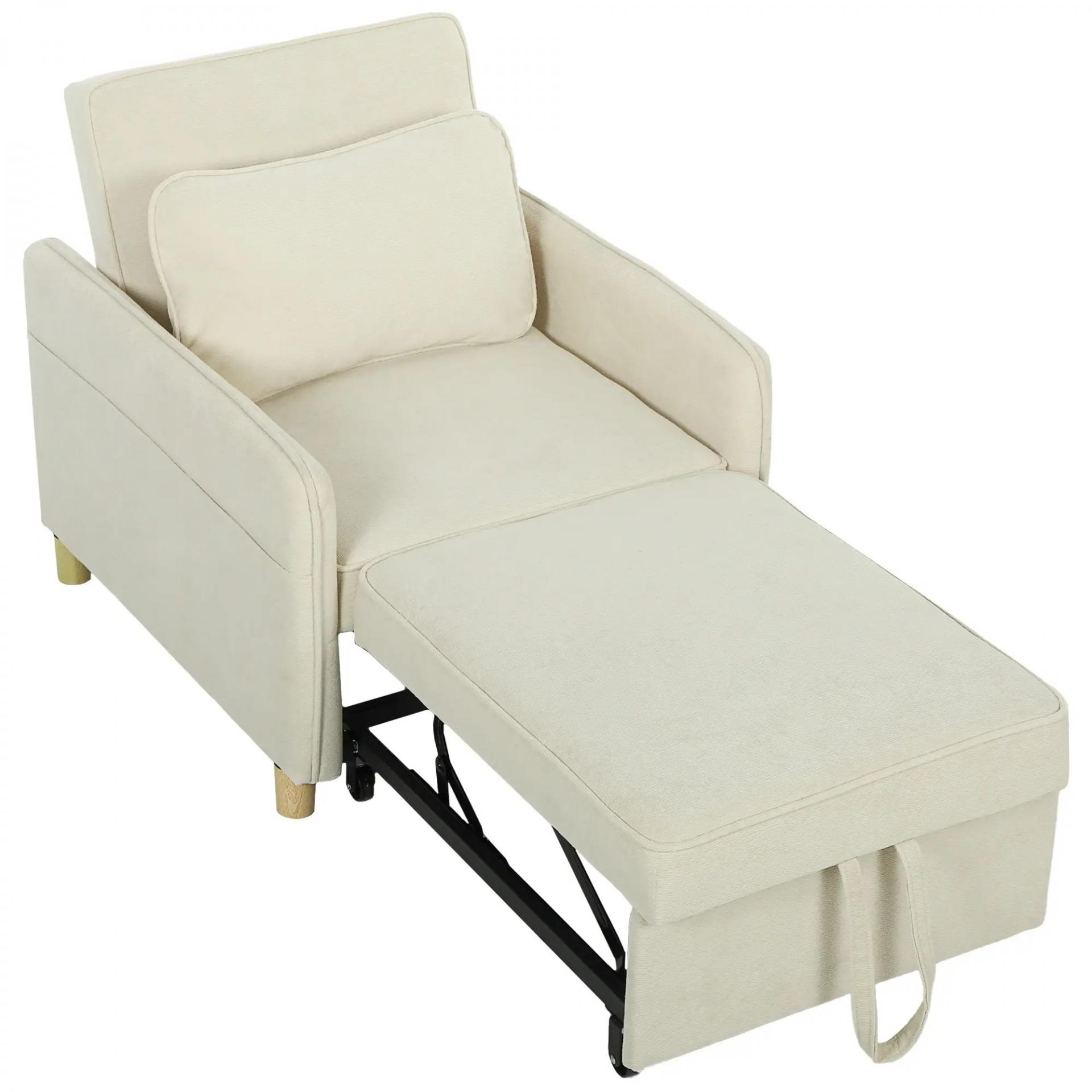 Sillón Cama Individual 3 en 1 Sofá Cama Plegable con Respaldo Ajustable y Cojín para Salón 74x85,5x82 cm Beige
