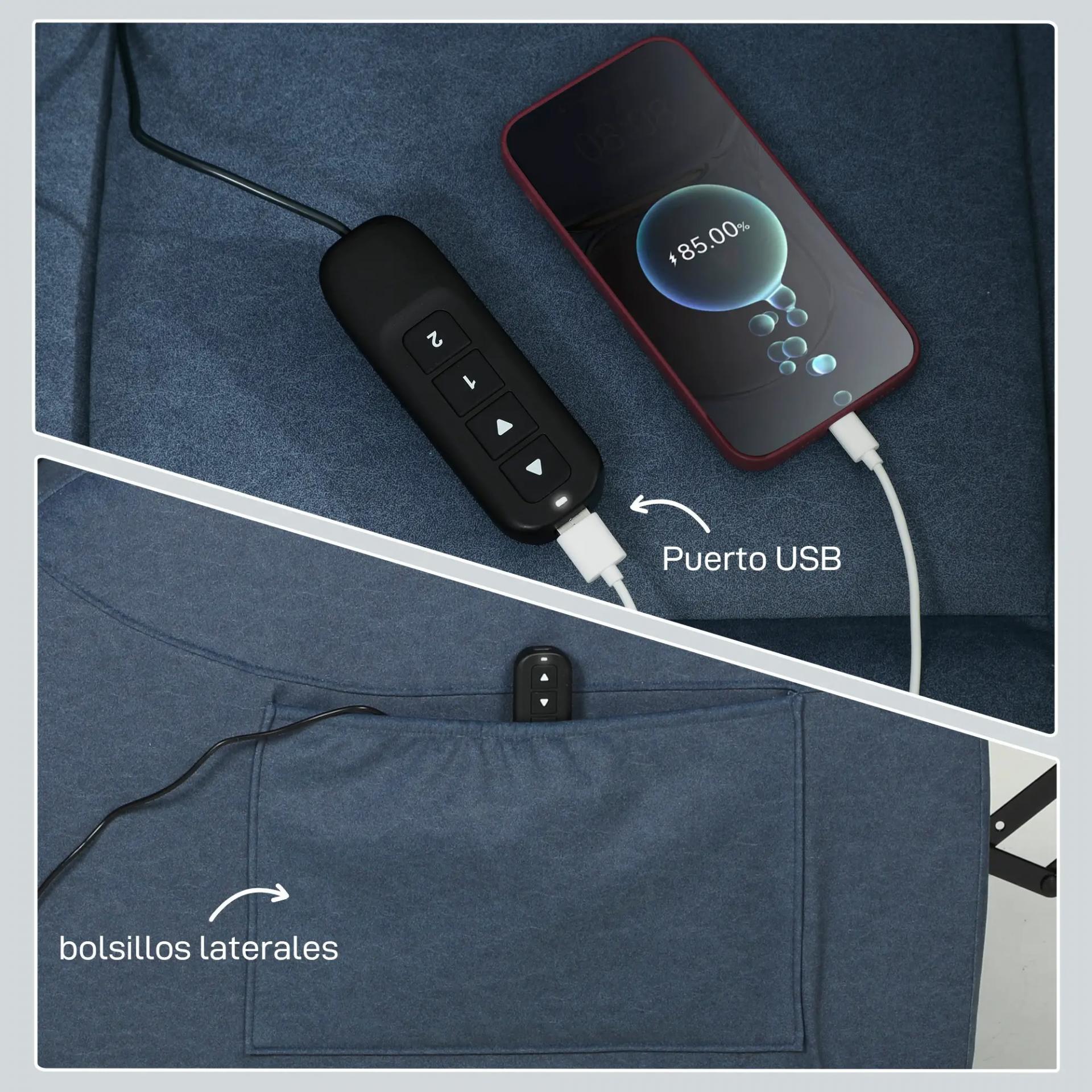 - CONFORT Y FUNCIONALIDAD: Este sillón relax reclinable dispone de puerto USB para cargar dispositivos y bolsillos laterales para guardar el mando o revistas. Mantén todo a mano mientras disfrutas de un descanso completo y sin interrupciones