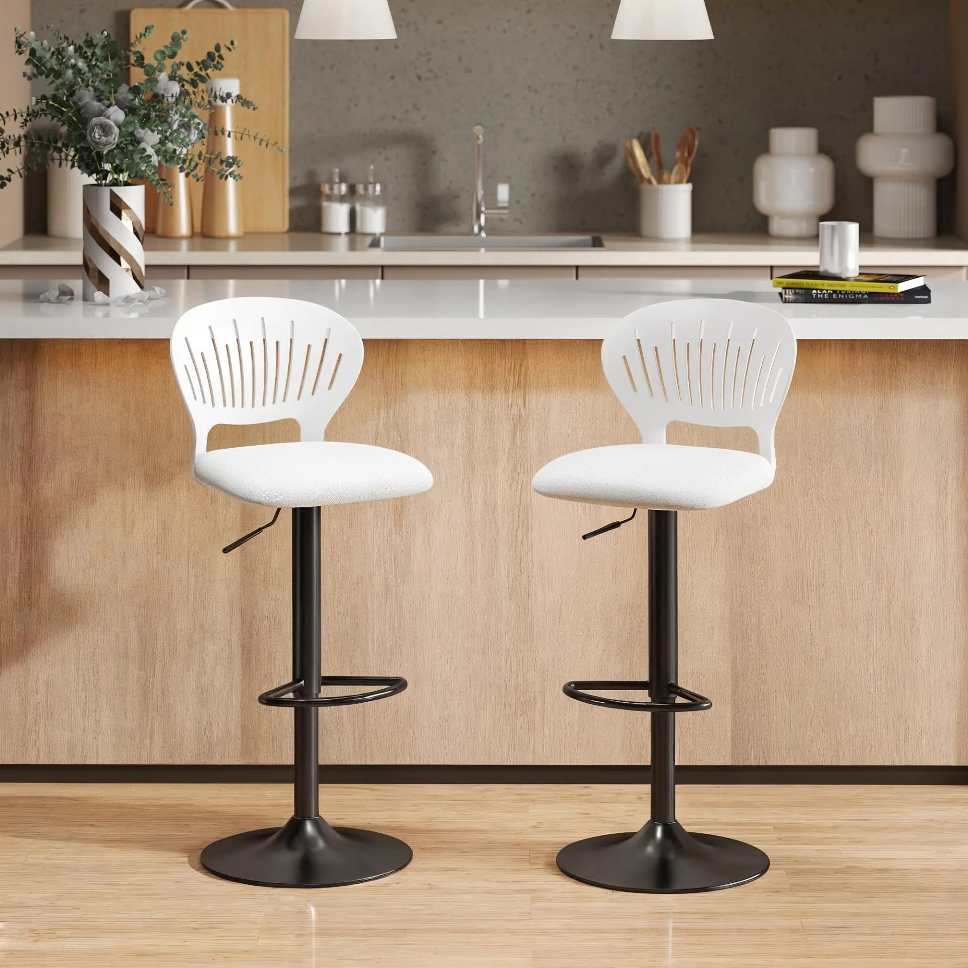 - ESTILO MODERNO Y FUNCIONAL: De diseño limpio y contemporáneo, estas sillas altas de cocina se integran fácilmente en cocinas, barras o comedores. Su estética minimalista combina elegancia y comodidad, adaptándose a cualquier ambiente con un toque actual