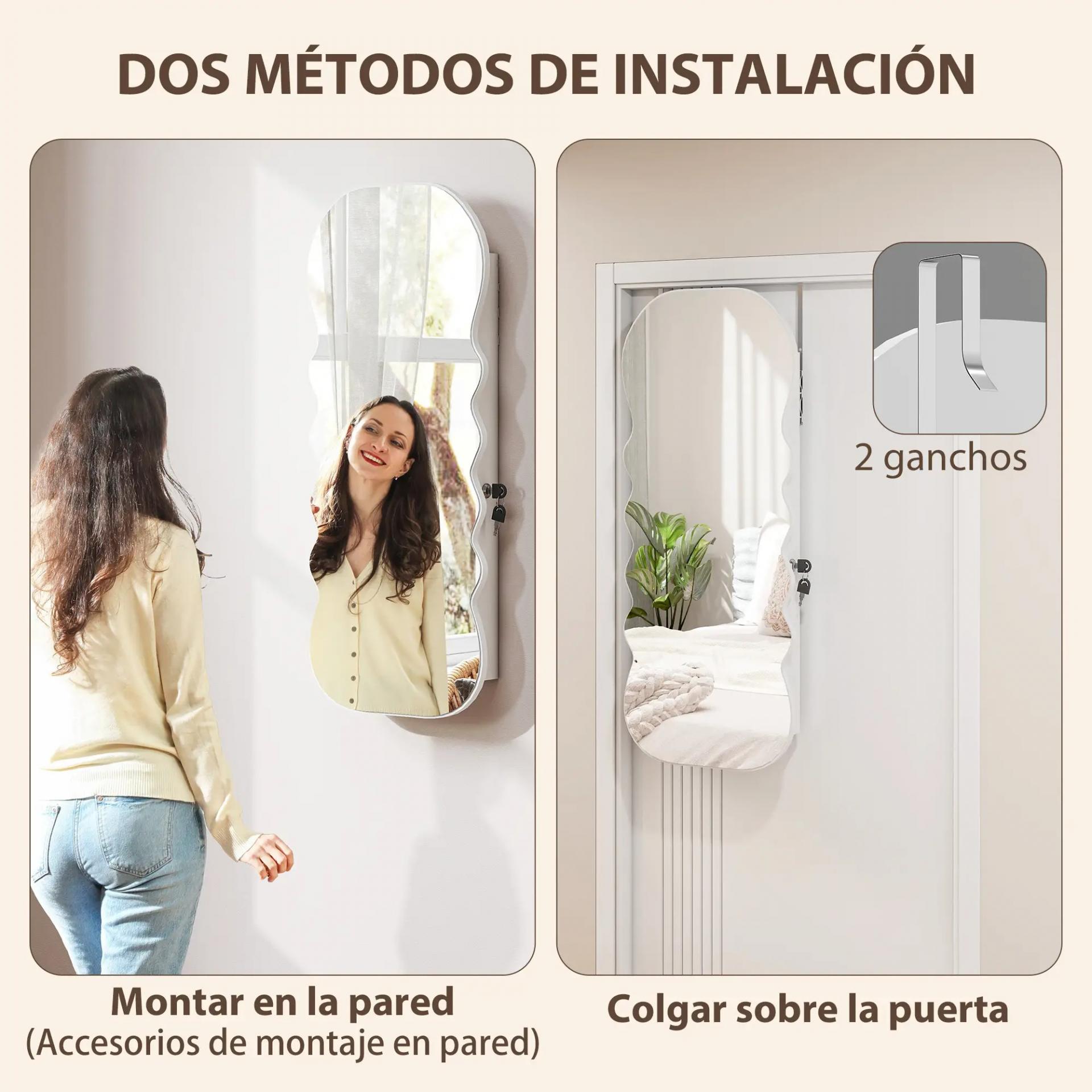 - MONTAJE O COLGADO SEGÚN TU ESPACIO: Puedes fijarlo a la pared o colgarlo en la puerta para aprovechar mejor el espacio. Este espejo joyero se adapta fácilmente a dormitorios, vestidores o armarios