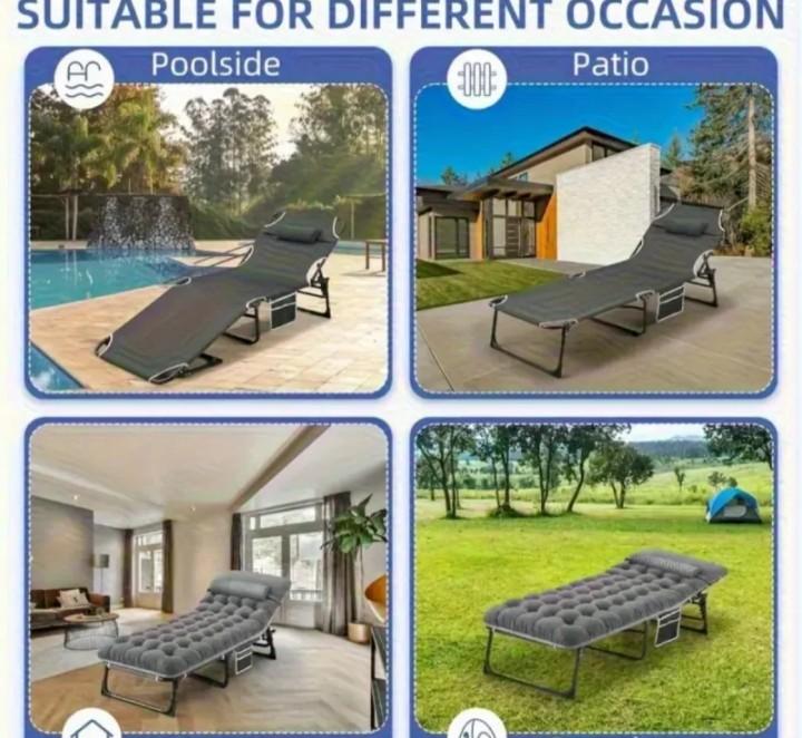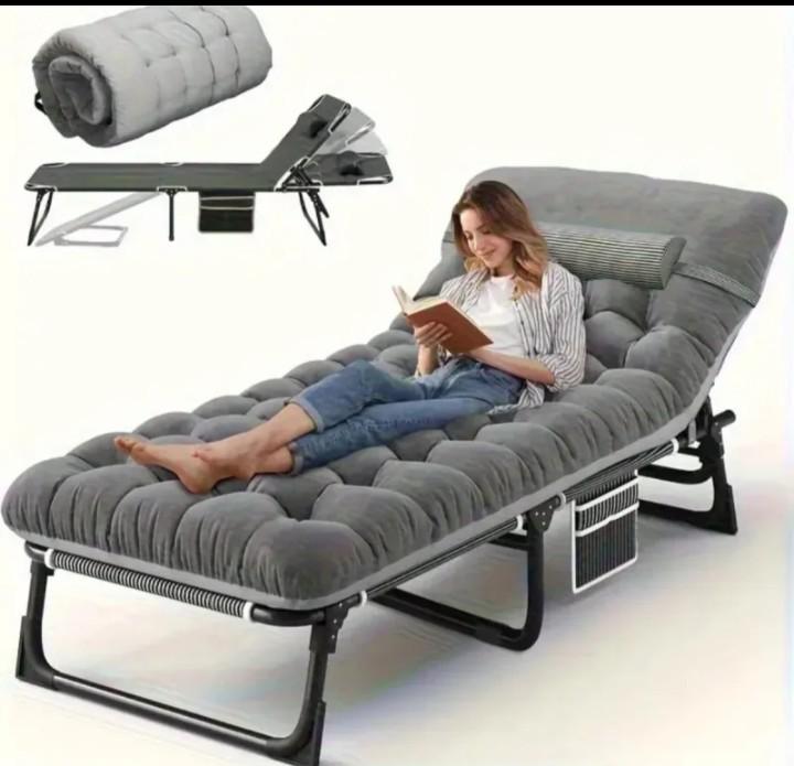 Cama plegable de camping con un cómodo colchón.
