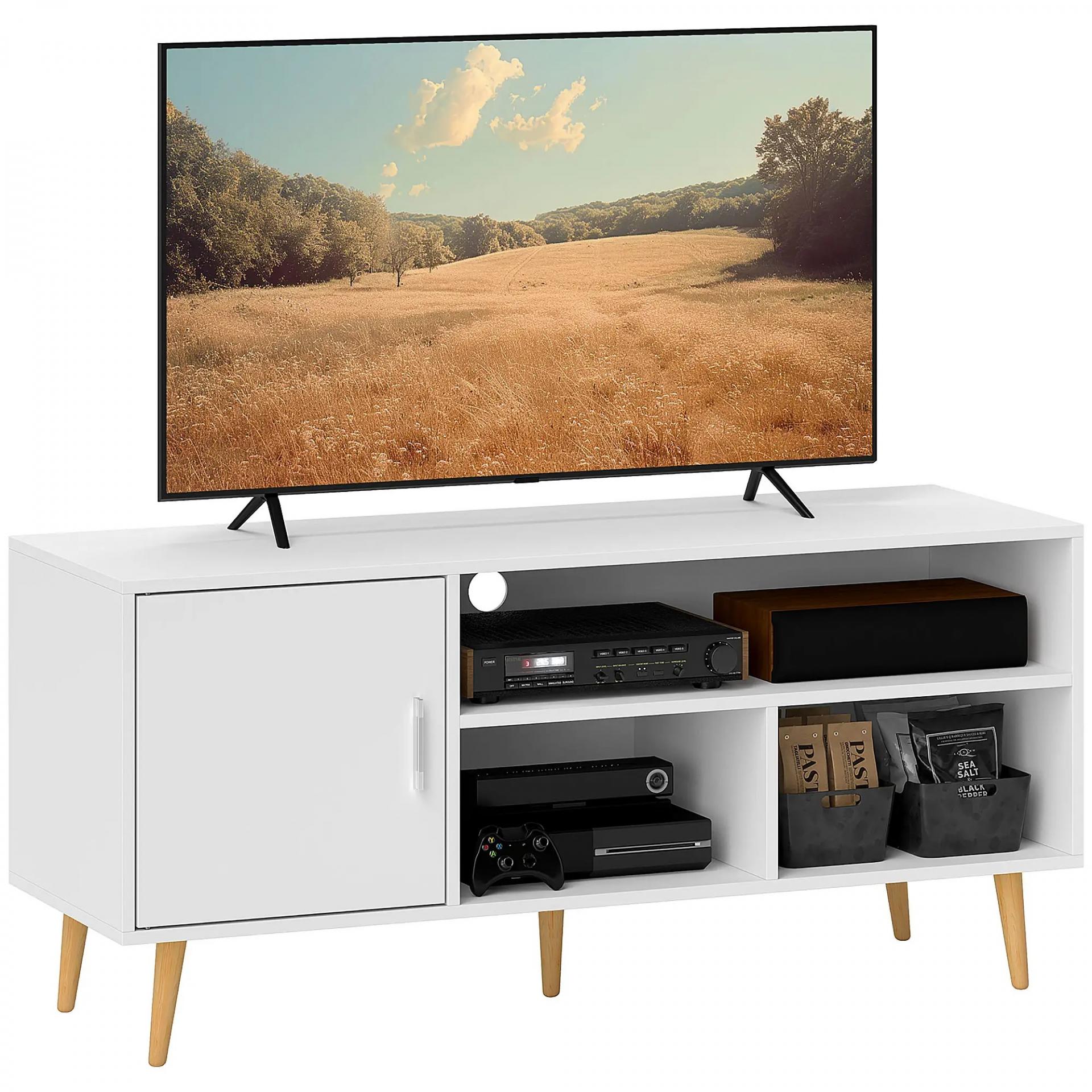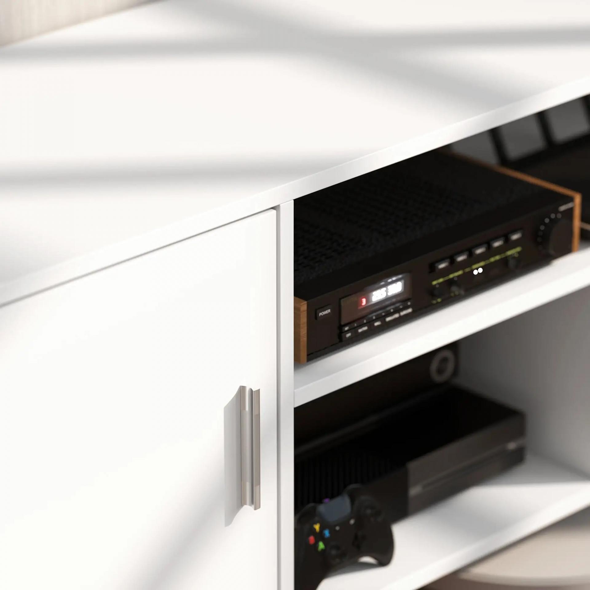 Mueble de TV para Televisores de hasta 60" Mesa para TV de Salón Comedor Moderna con Armario y 3 Compartimentos 120x40x55 cm Blanco