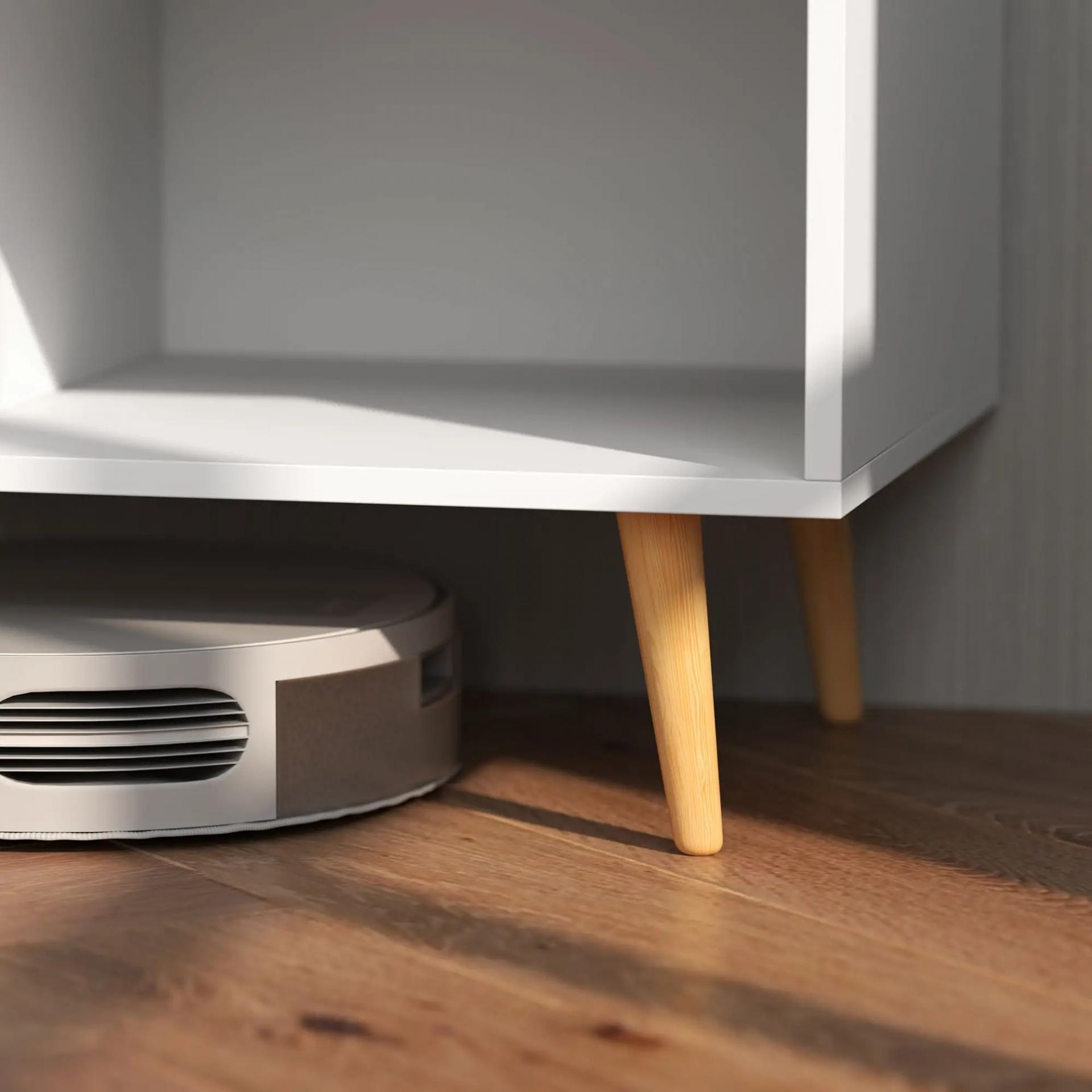 - PATAS DE MADERA: Este mueble de TV tiene 5 patas de madera maciza para garantizar una mayor estabilidad y capacidad de carga. Su altura de 14,5 cm es ideal para facilitar la limpieza del suelo, incluso para robots aspiradores de limpieza