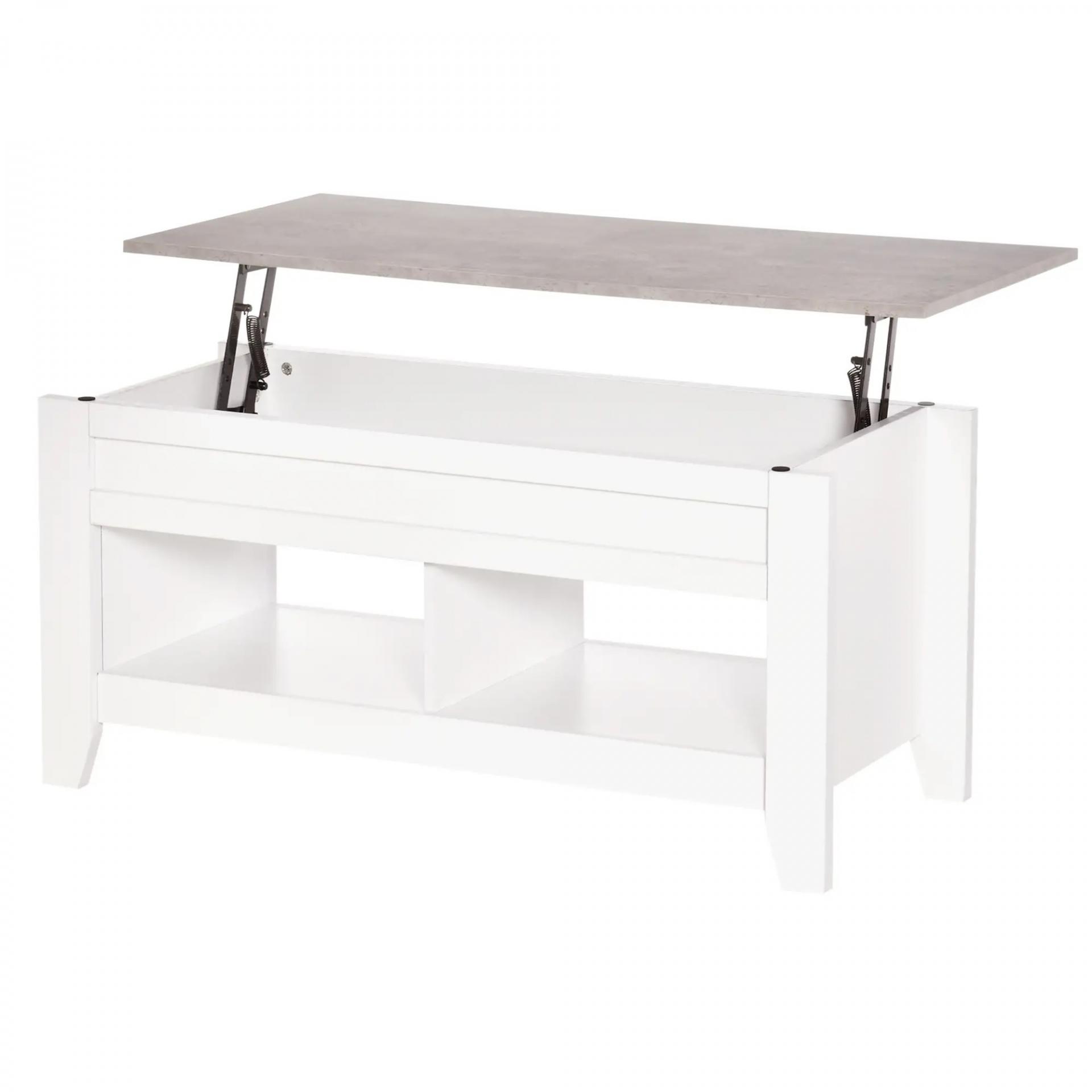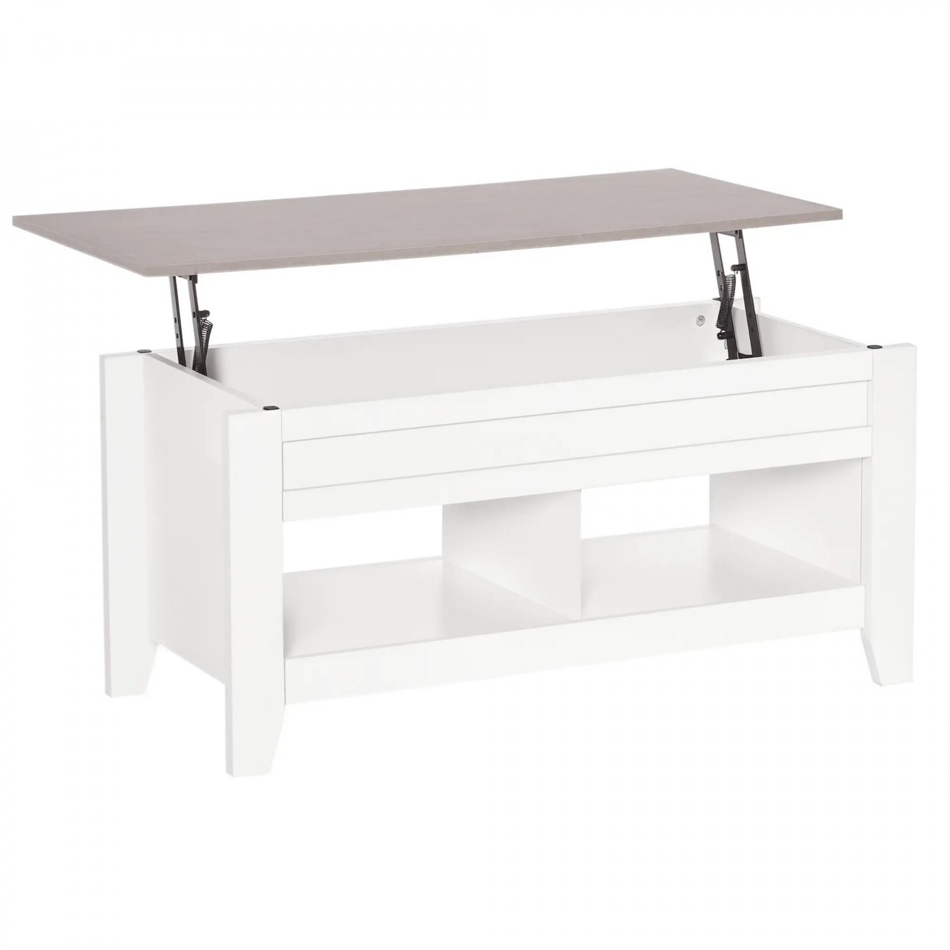 DISEÑO CON ENCIMERA ELEVABLE: La encimera de esta moderna mesa de centro elevable se puede levantar para crear una superficie de trabajo. La combinación de colores blanco y madera se integrará perfectamente con el resto de la decoración de tu hogar