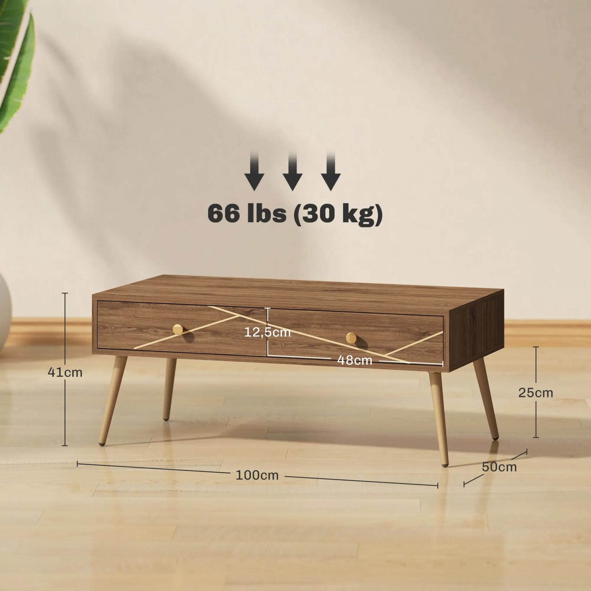 Mesa de Centro con 2 Cajones y Patas de Acero para Sala de Estar Dormitorio 100x50x41 cm Marrón