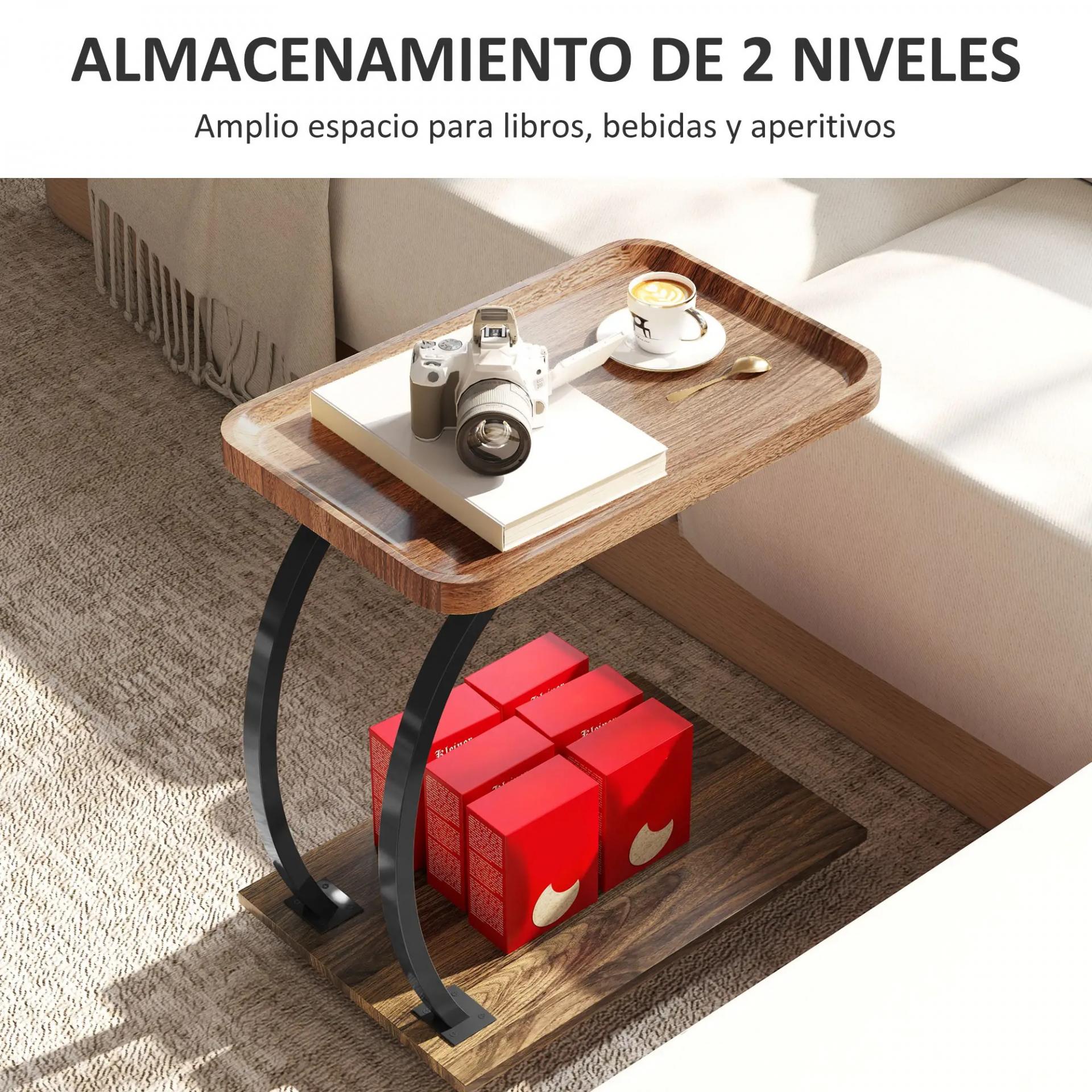 - ALMACENAJE DE DOBLE NIVEL CON BANDEJA: Esta mesita auxiliar pequeña con dos niveles de almacenamiento te ofrecen espacio suficiente para libros, bebidas y aperitivos, mientras que la bandeja superior con bordes curvos evita que los objetos se caigan o se derramen