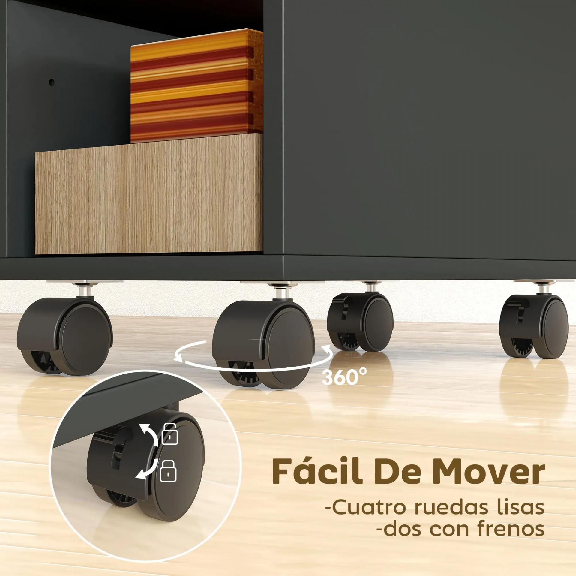 - MESA AUXILIAR CON RUEDAS: Equipada con cuatro ruedas de movimiento suave, dos con freno, esta mesa auxiliar para salón se desplaza fácilmente. Llévala sin esfuerzo del salón al dormitorio o a cualquier rincón donde necesites un mueble práctico y versátil