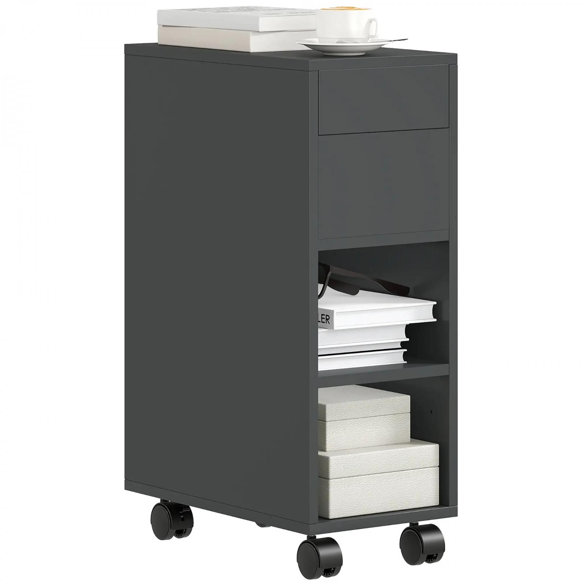 - MUEBLE RESISTENTE Y FUNCIONAL: Fabricada en melamina de madera robusta y con guías metálicas firmes, esta mesita auxiliar de HOMCOM está diseñada para un uso diario duradero. Sus materiales garantizan un desplazamiento suave y silencioso de la encimera