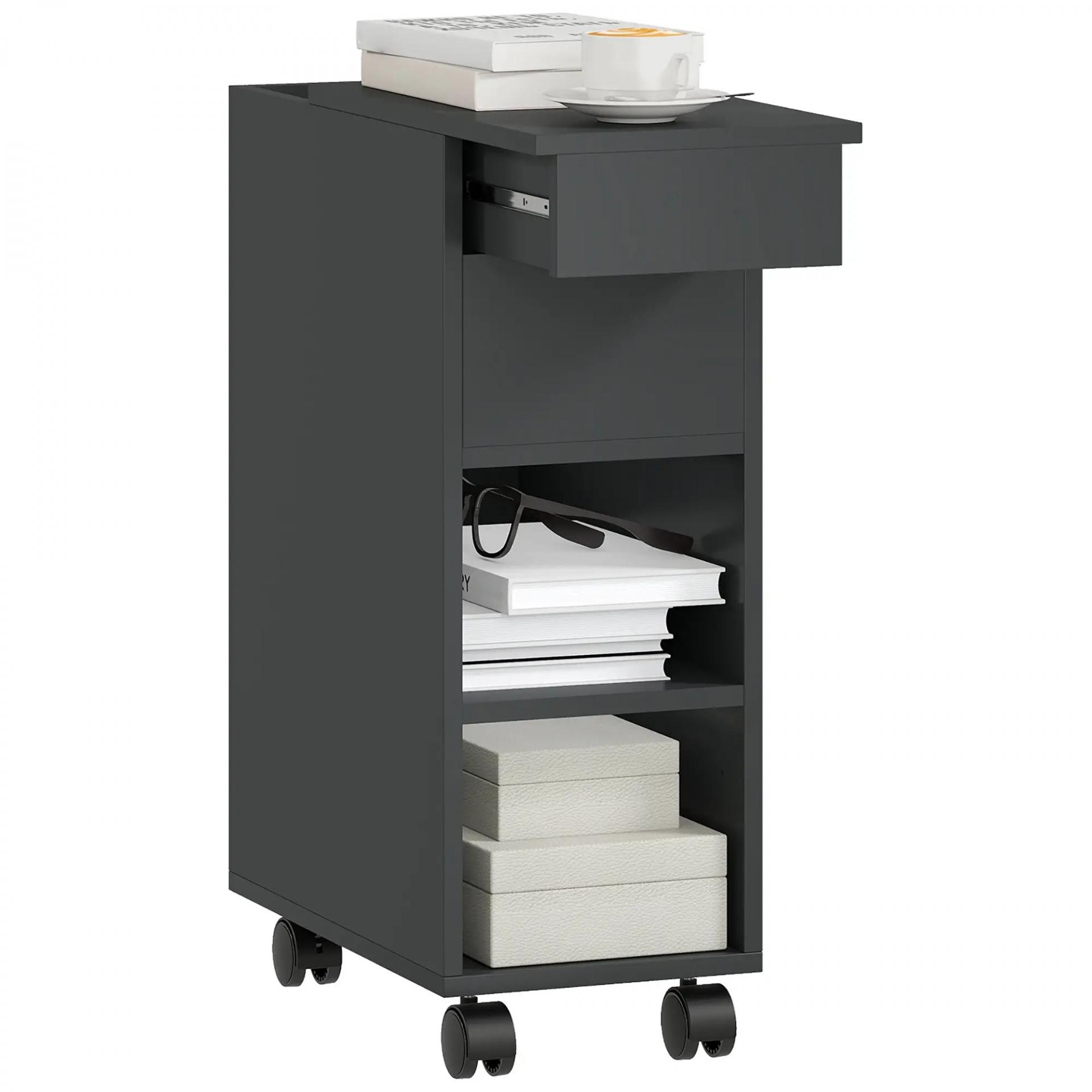 Mesa Auxiliar con Encimera Deslizante Ruedas Almacenamiento Oculto Estante Ajustable Negro