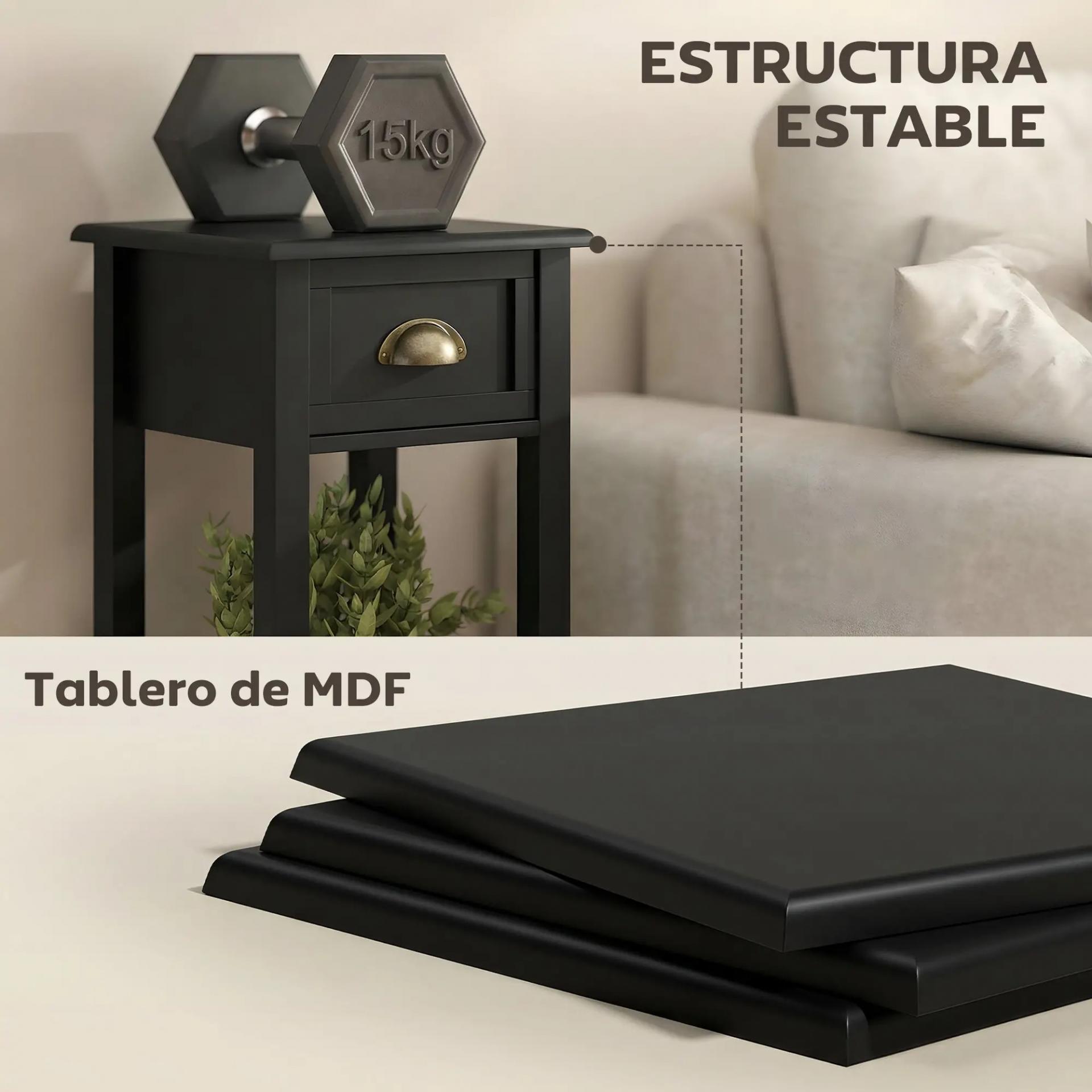 Mesa Auxiliar Estilo Moderno Mesita Auxiliar con Cajón y Estante de Almacenamiento 30x30x75 cm Negro