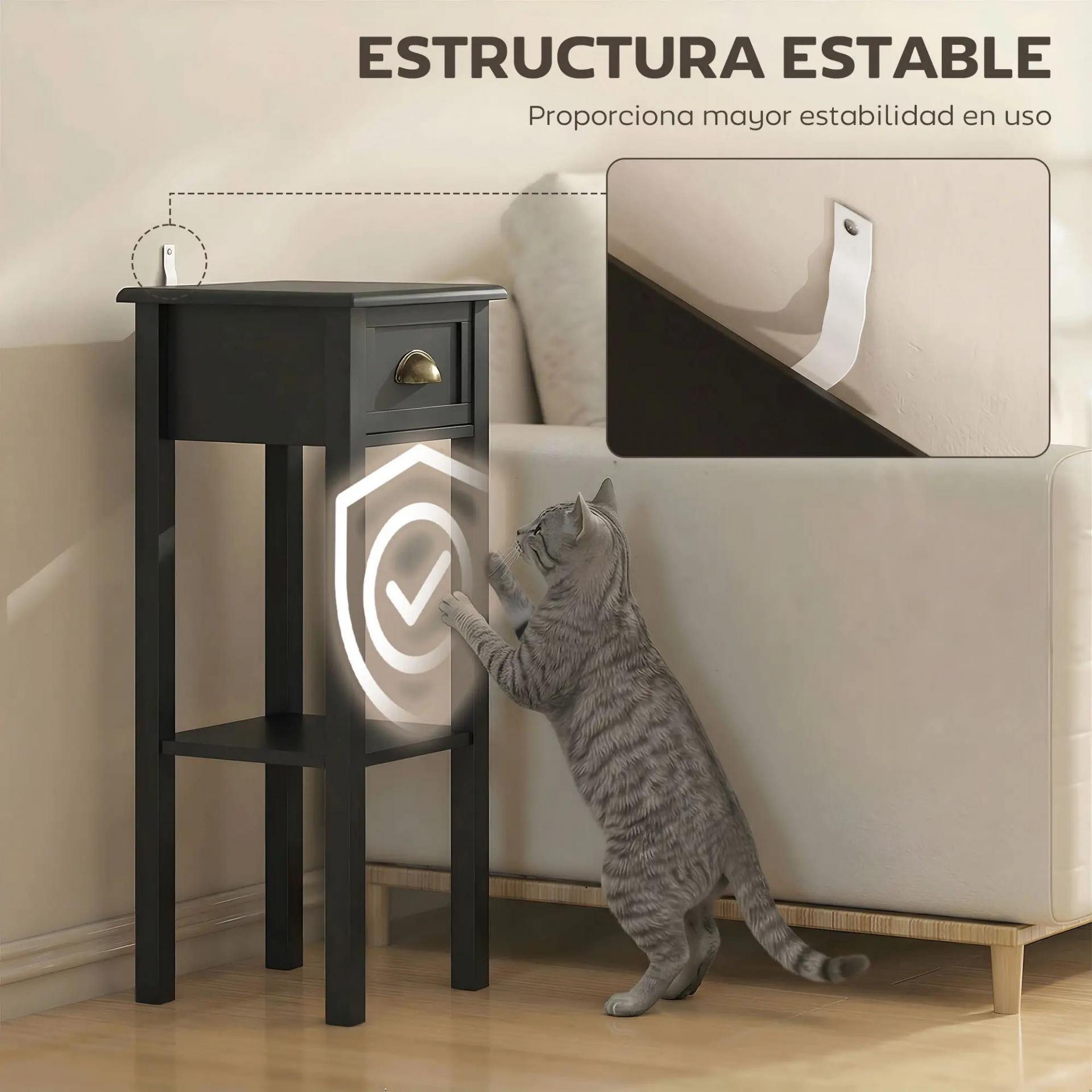 - ESTRUCTURA RESISTENTE: Hecha de MDF, mesita auxiliar cuenta con una estructura estable y resistente, ideal para un uso diario y prolongado. Incluye un dispositivo anti-vuelco por si la quieres fijar a la pared, añadiendo mayor estabilidad a esta pequeña mesa
