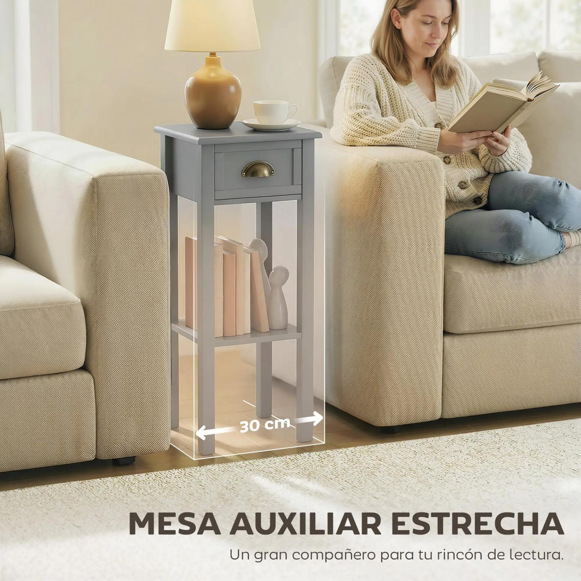 Mesa Auxiliar Estilo Moderno Mesita Auxiliar con Cajón y Estante de Almacenamiento 30x30x75 cm Gris
