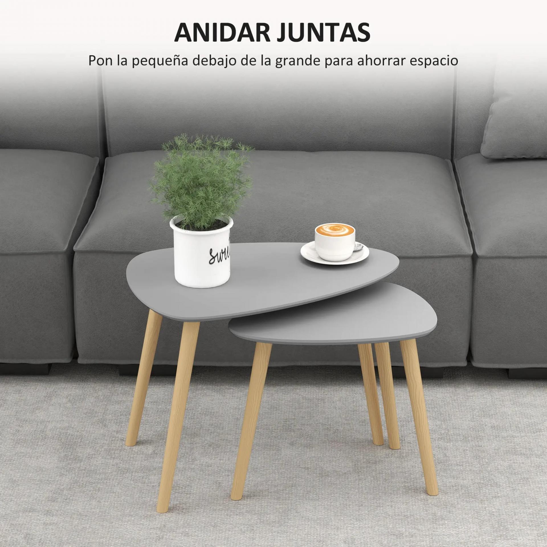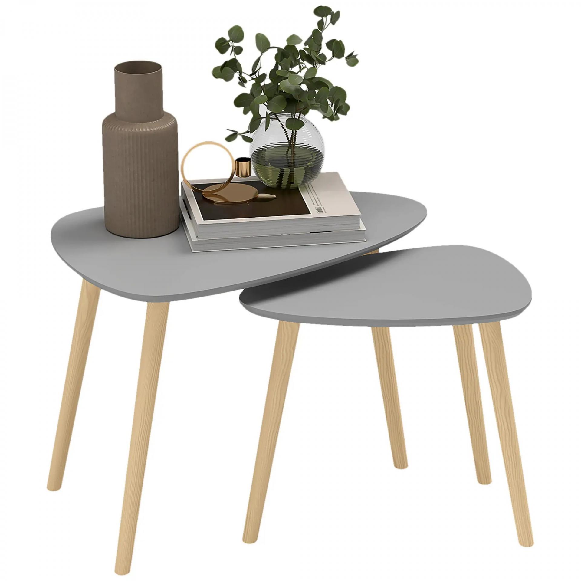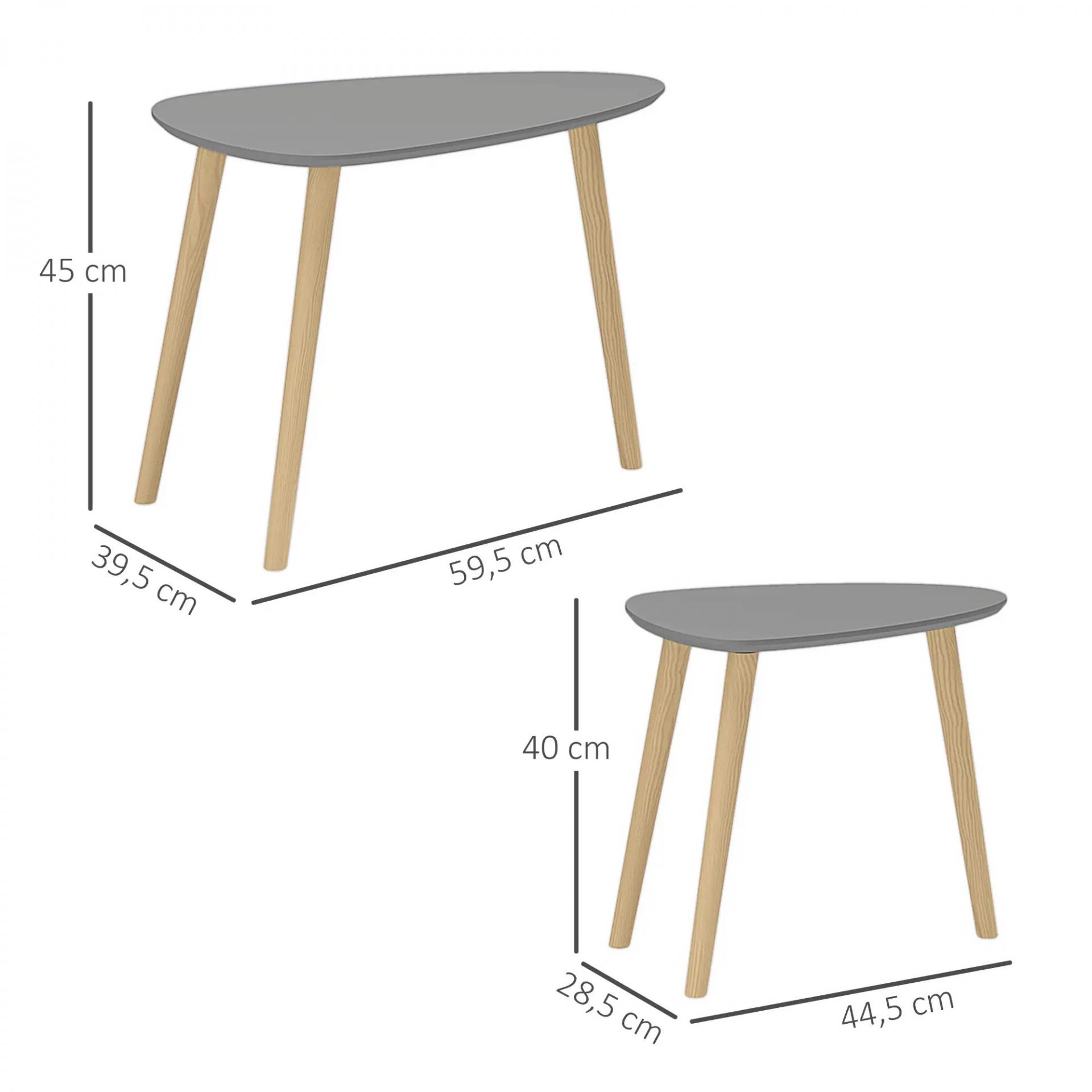Juego de 2 Mesas Auxiliares Mesas Nido con Patas de Madera 59,5x39,5x45 cm y 44,5x28,5x40 cm Gris y Natural