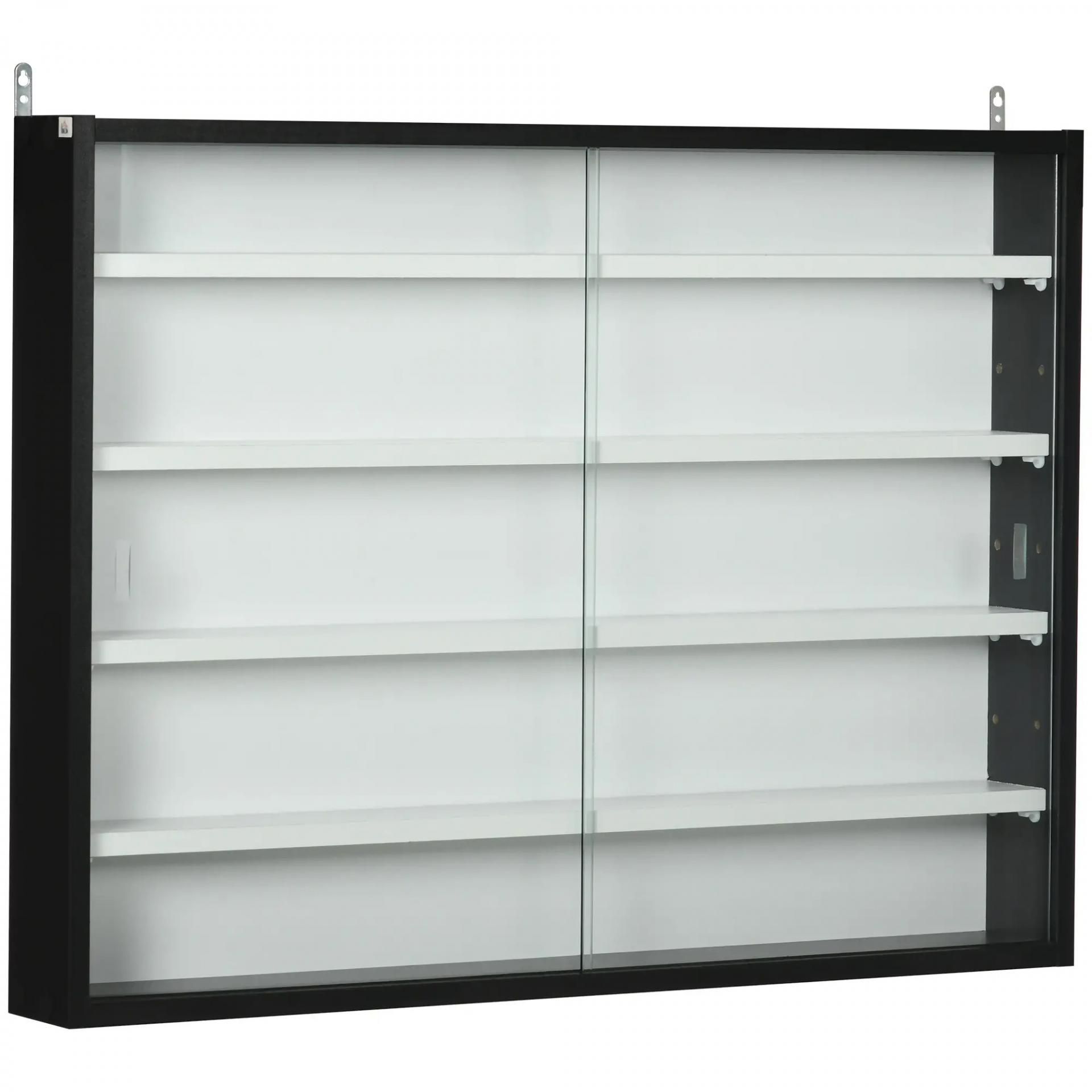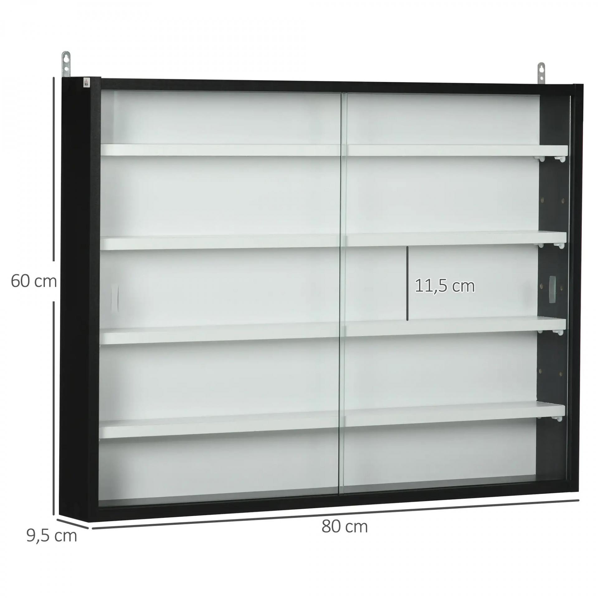 Vitrina Expositora Vitrina de Pared con Estantes Ajustables y 2 Puertas Correderas de Vidrio para Colecciones Perfumes Figuras de Decoración 80x9,5x60 cm Blanco y Negro