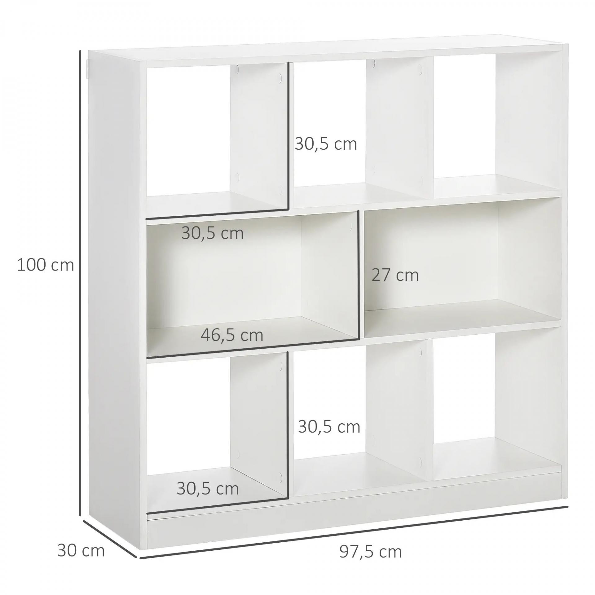 Estantería Librería con 8 Compartimentos Estantería de Exposición Moderno para Sala de Estar 97,5x30x100 cm Blanco