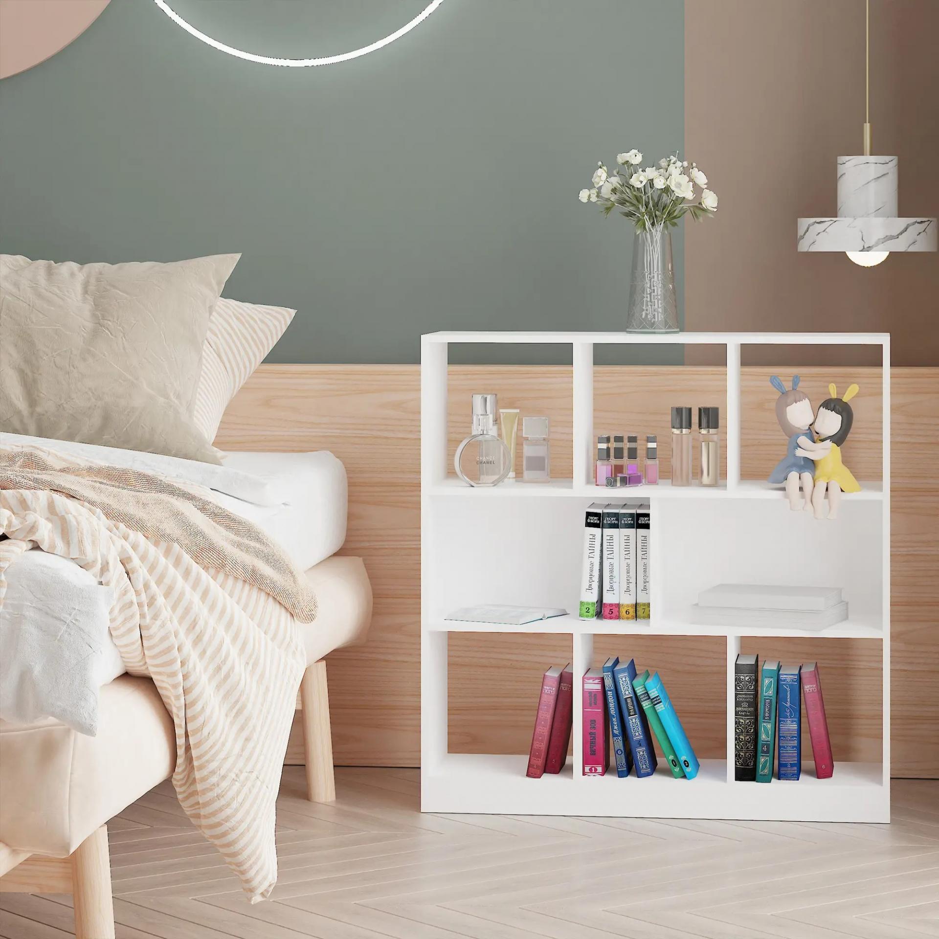 - AMPLIO ESPACIO: Esta estantería de 3 niveles con 8 compartimentos ofrece mucho espacio para que puedas guardar tus libros, plantas, fotos, recuerdos, pequeños objetos decorativos y otros artículos del hogar