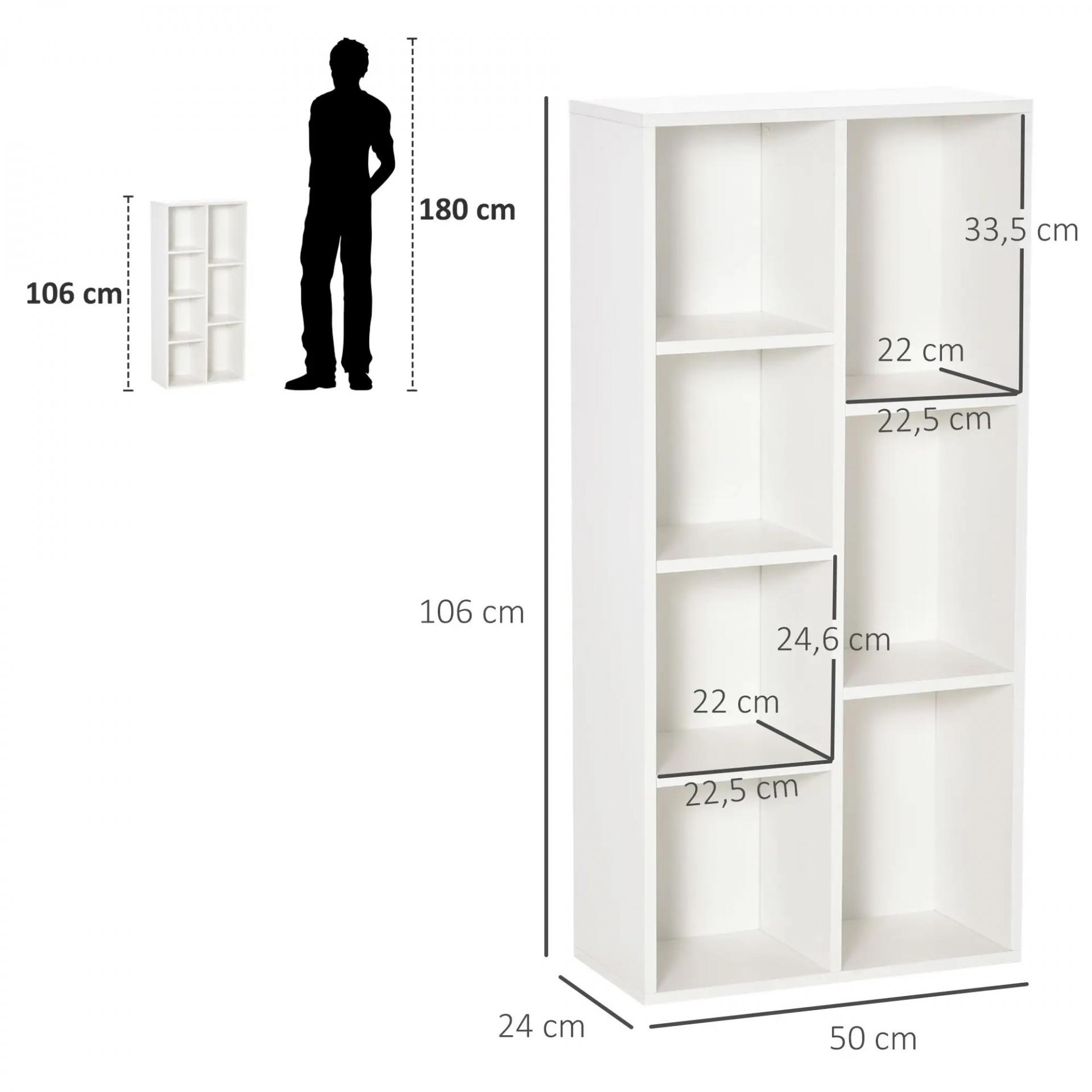 Estantería para Libros Librería de Madera con 7 Compartimentos de Almacenaje Plantas Archivos para Sala de Estar Dormitorio Oficina 50x24x106 cm Blanco