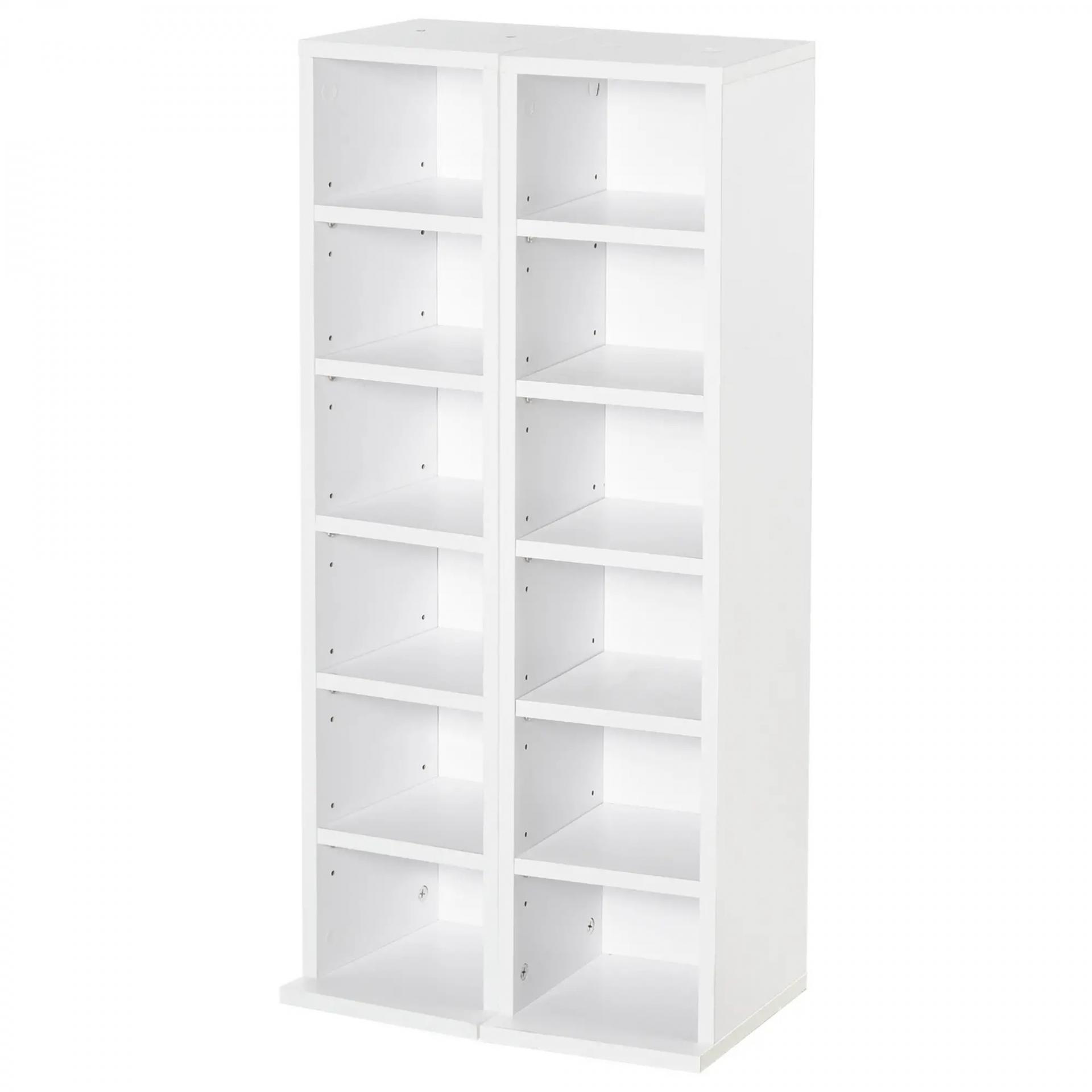 2 Estanterías para CD o DVD con 12 Compartimentos para 204 CD's y Estante Ajustable 21x22,5x88,5 cm Blanco
