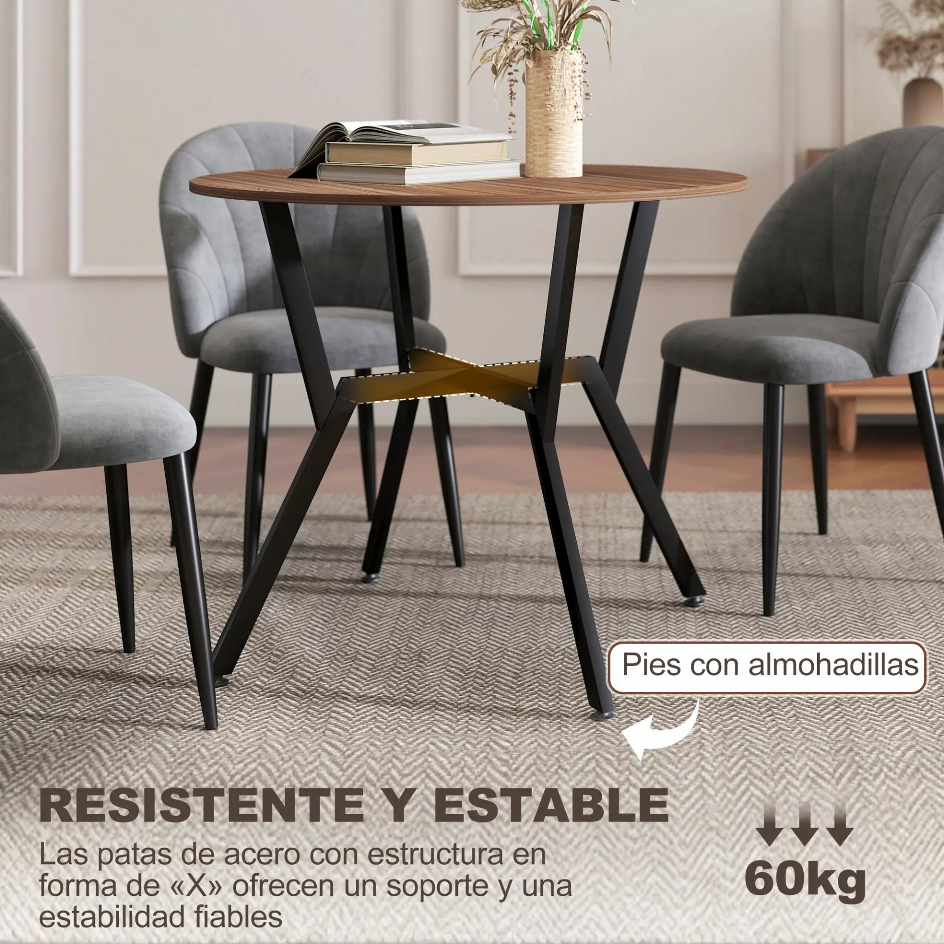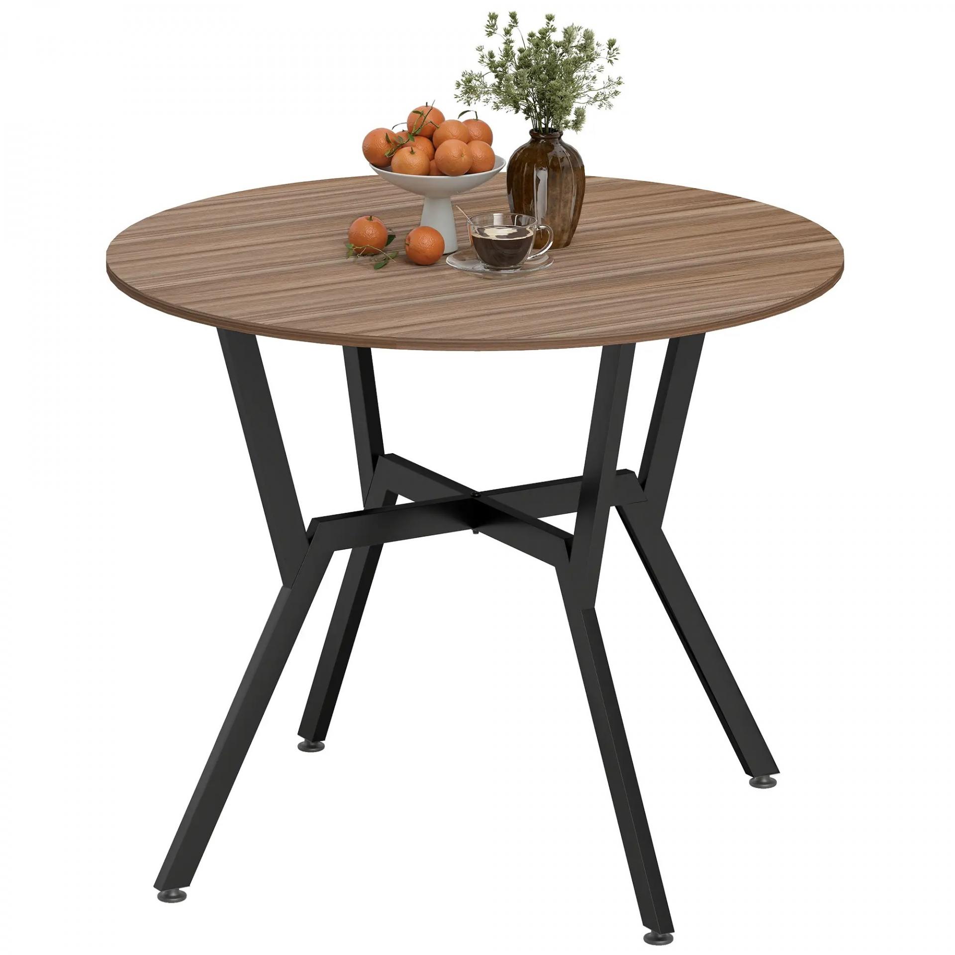 Mesa de Comedor Redonda de Estilo Industrial con Encimera de Madera y Marco de Acero Ø90x76 cm Marrón