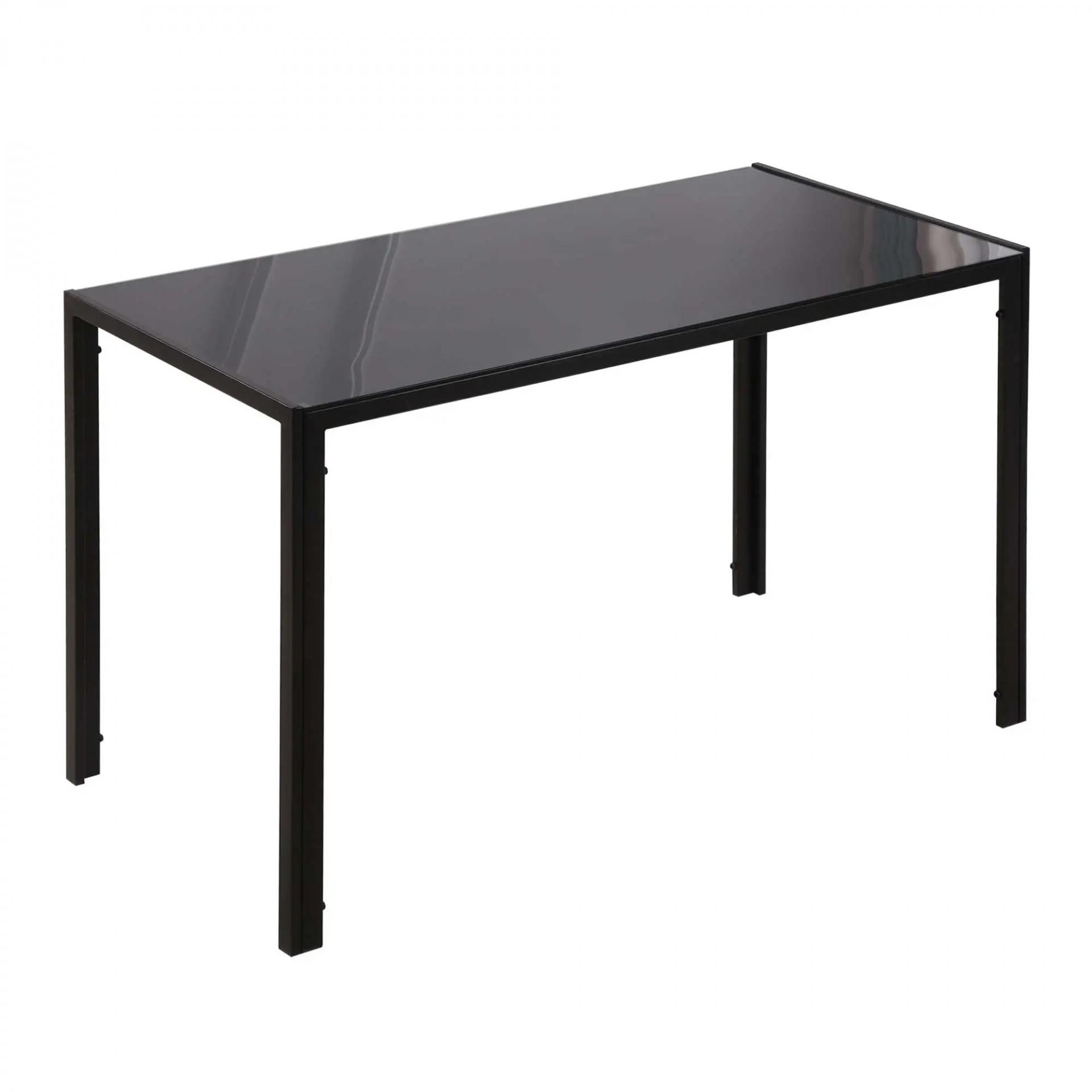 Mesa de Cocina de Cristal para 4-6 Personas con Patas de Metal Multifuncional para Cocina Salón 120x60x75 cm Negro