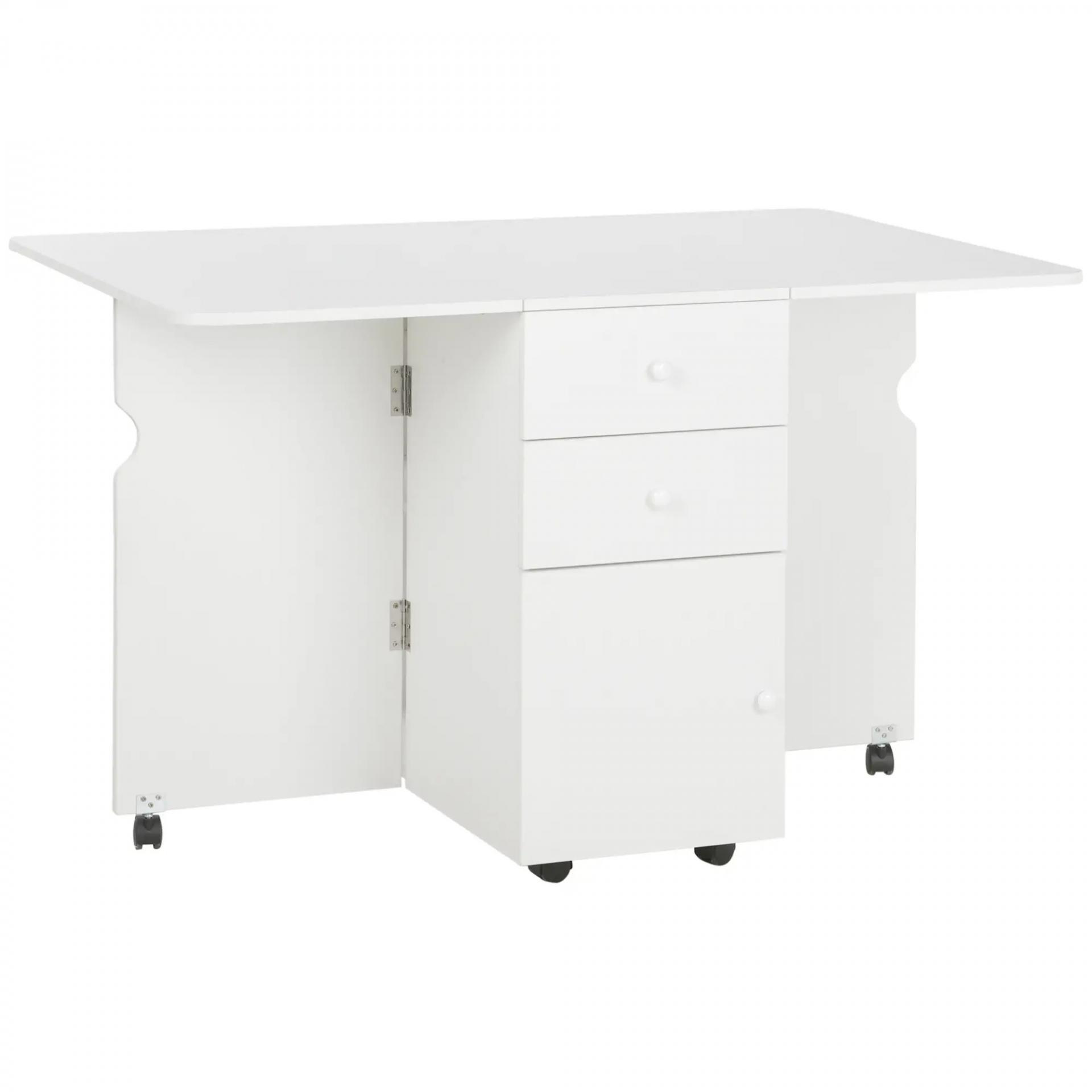 Mesa de Comedor Plegable Alas Abatibles con Ruedas y 2 Cajones Mesa de Cocina Pequeña Estilo Moderno 120x80x75 cm Blanco