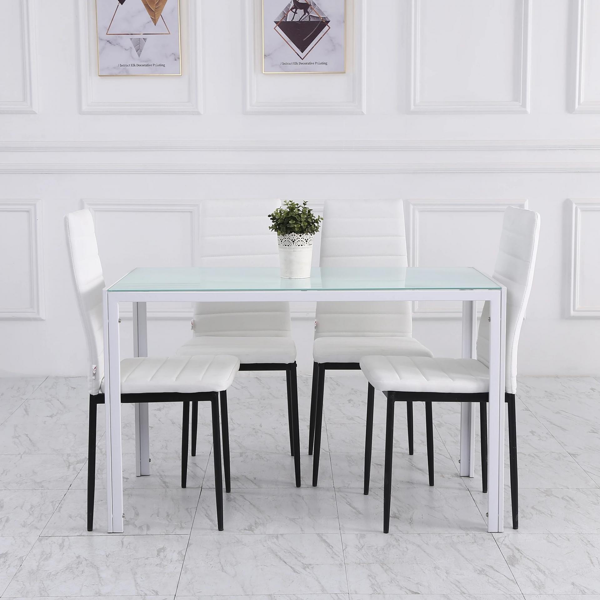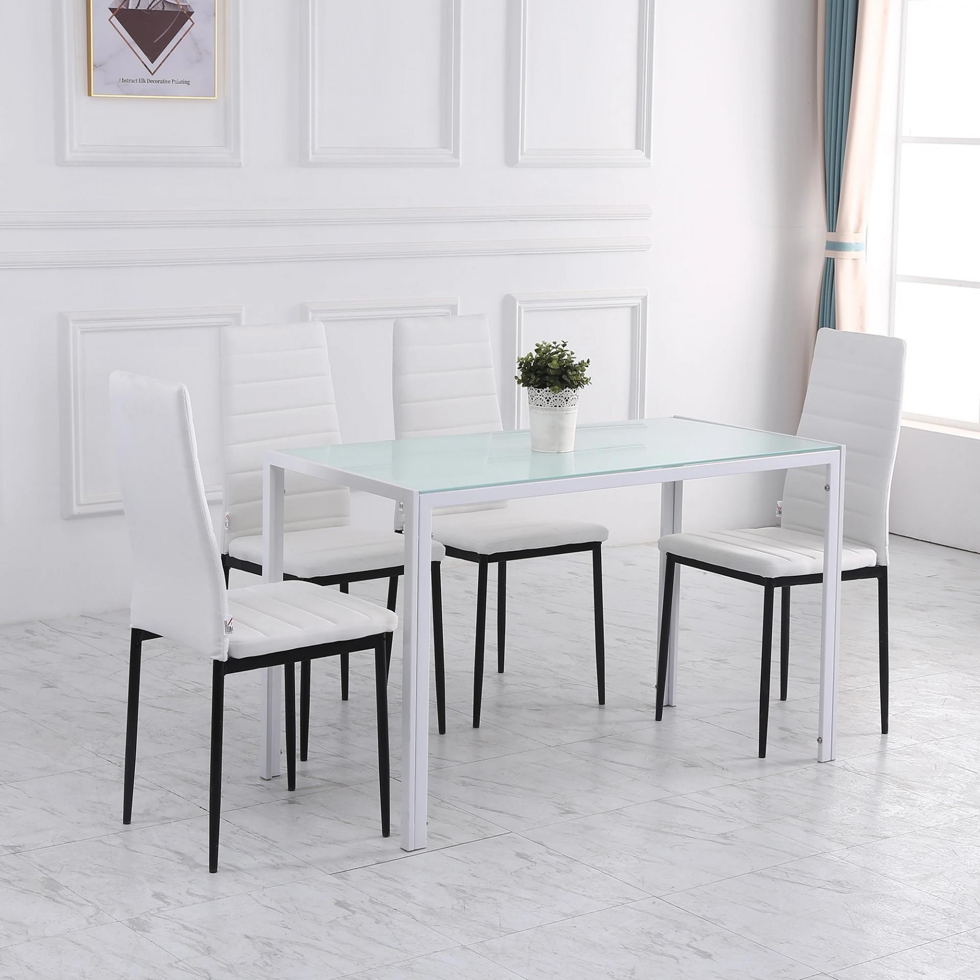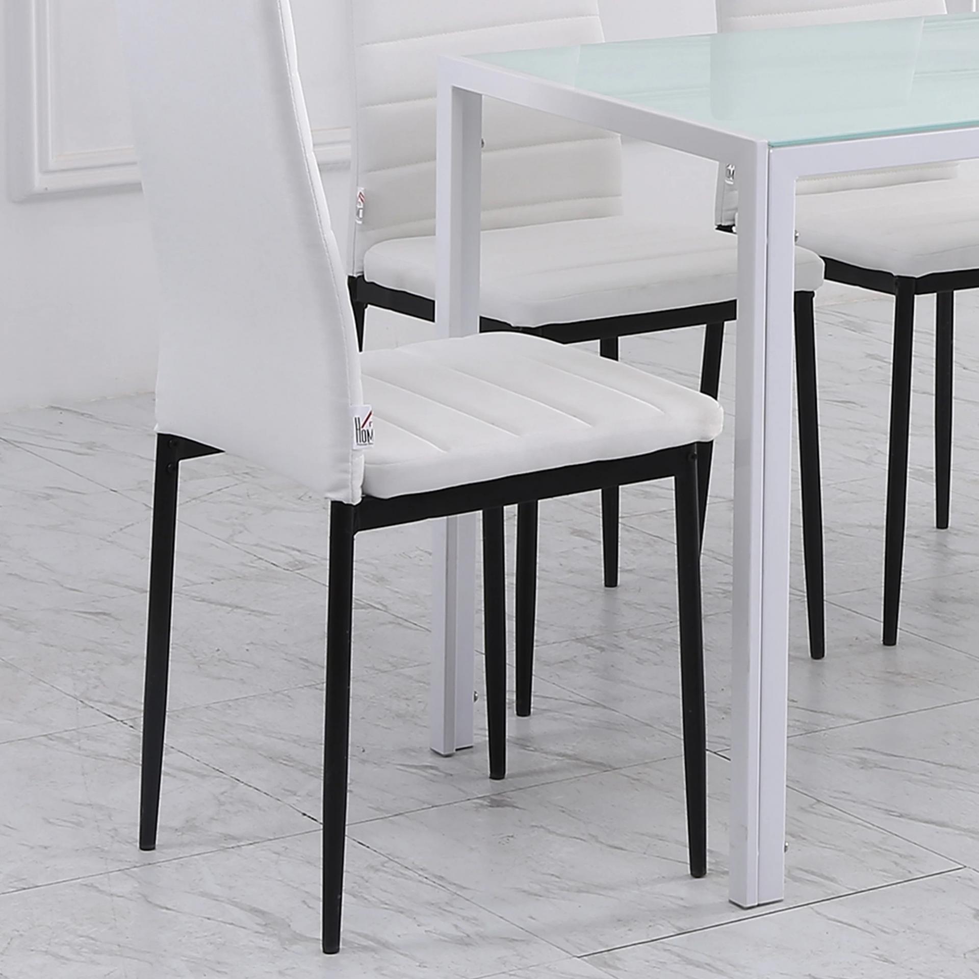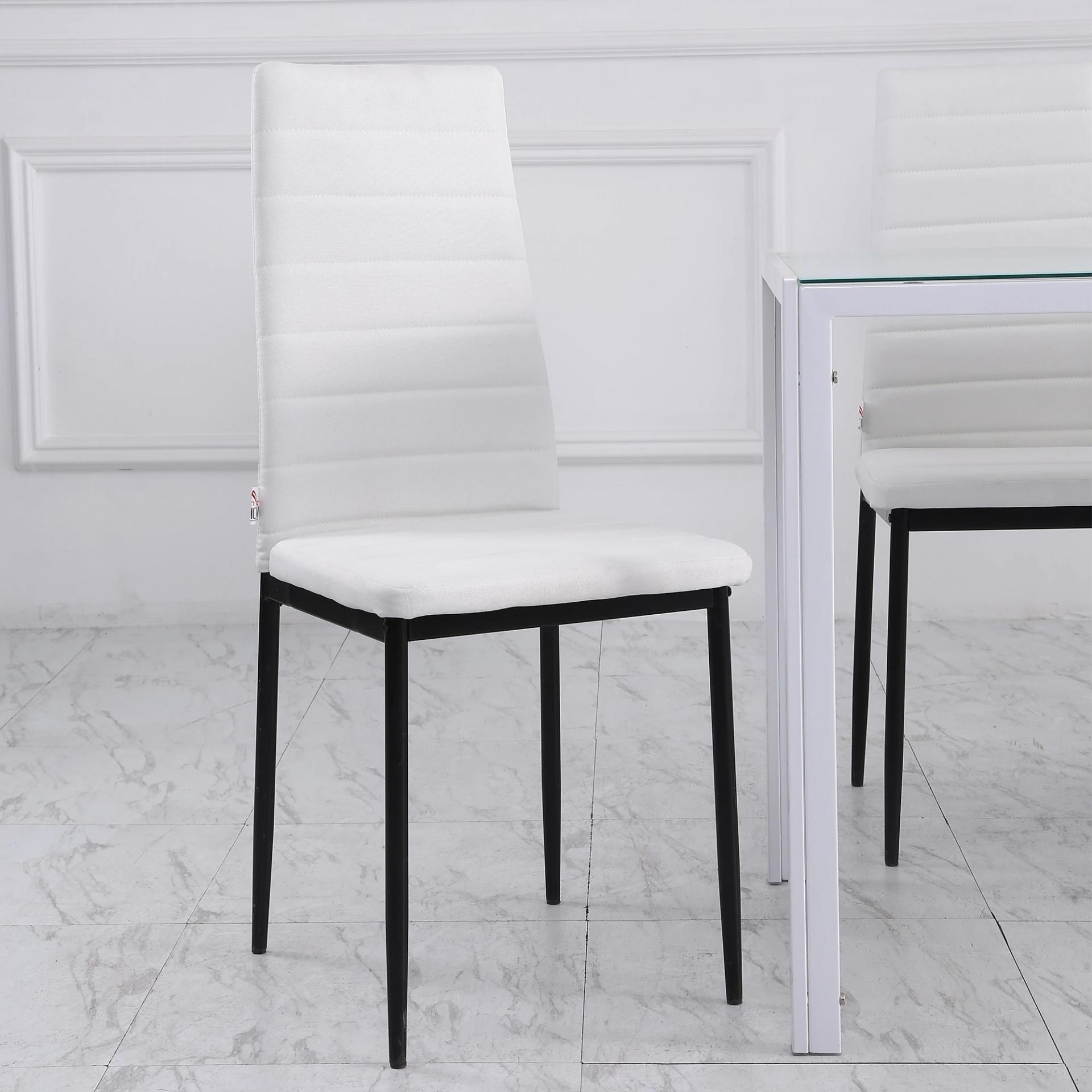 - CONFORT SIN BRAZOS: Cada silla blanca ofrece un asiento acolchado con espuma de densidad 22D y respaldo alto para mayor soporte lumbar. Al no tener reposabrazos, pueden guardarse fácilmente bajo la mesa, optimizando el espacio
